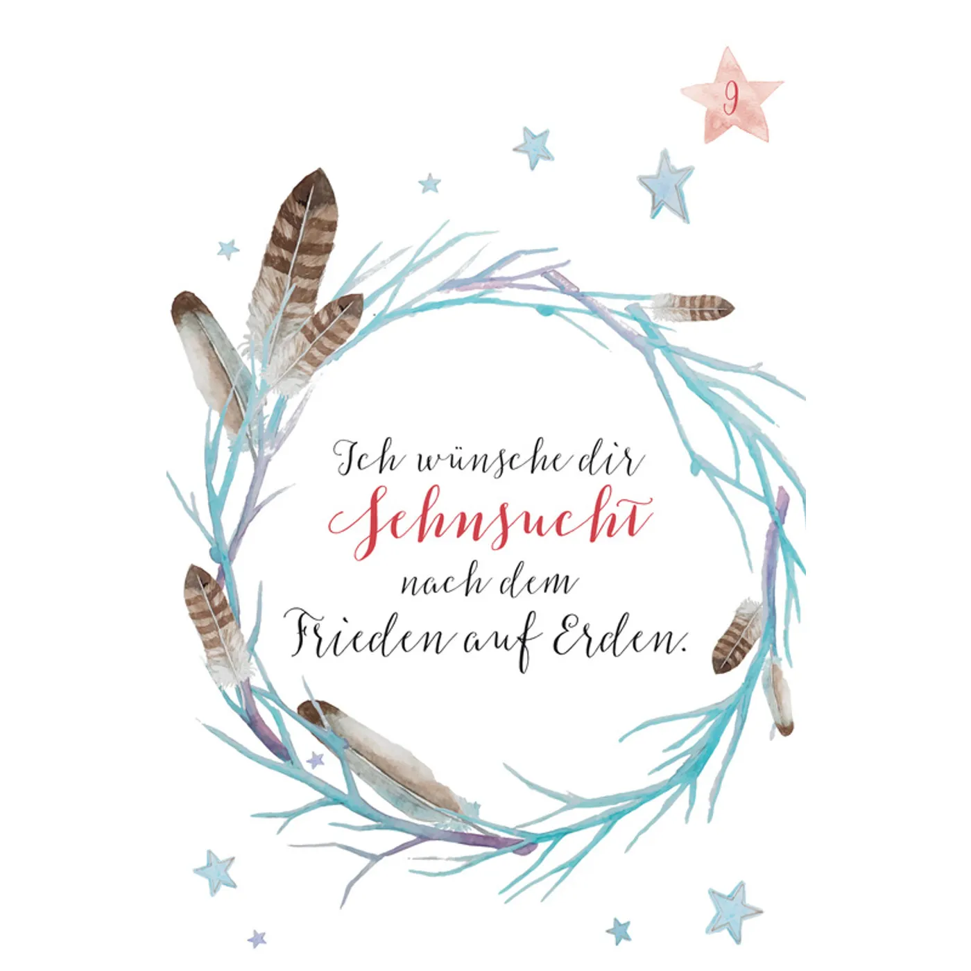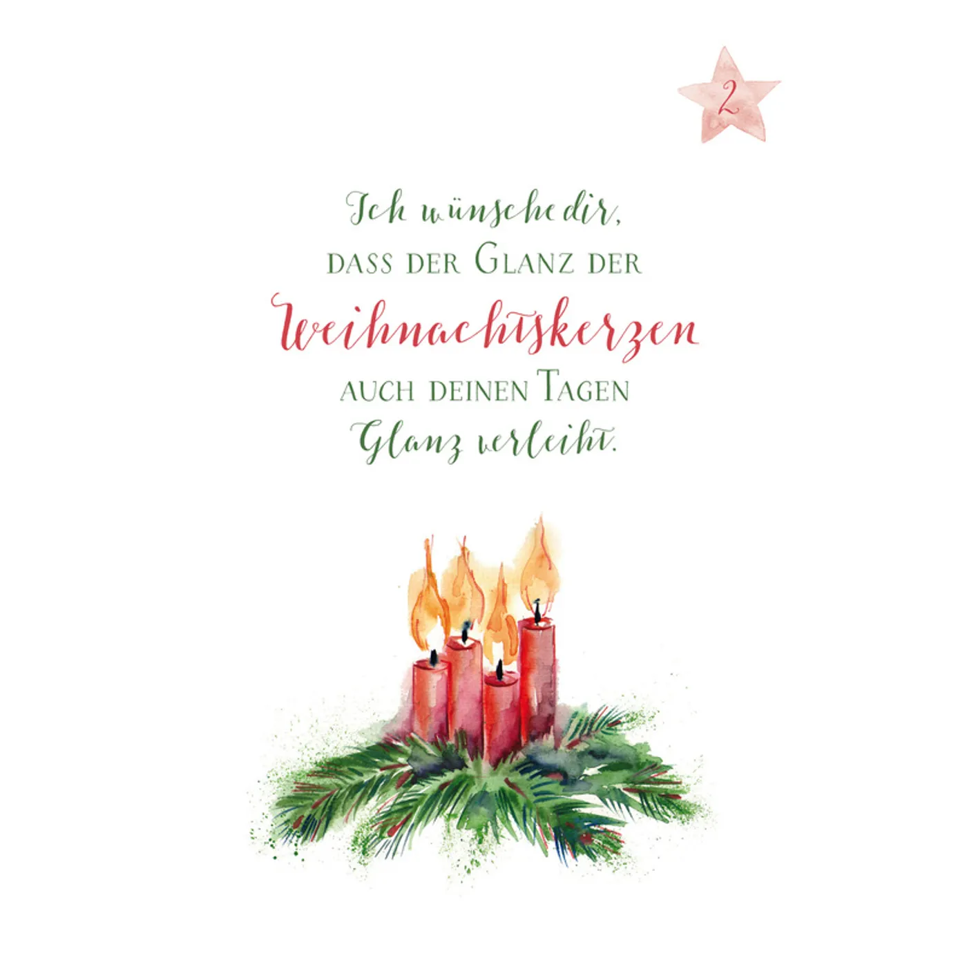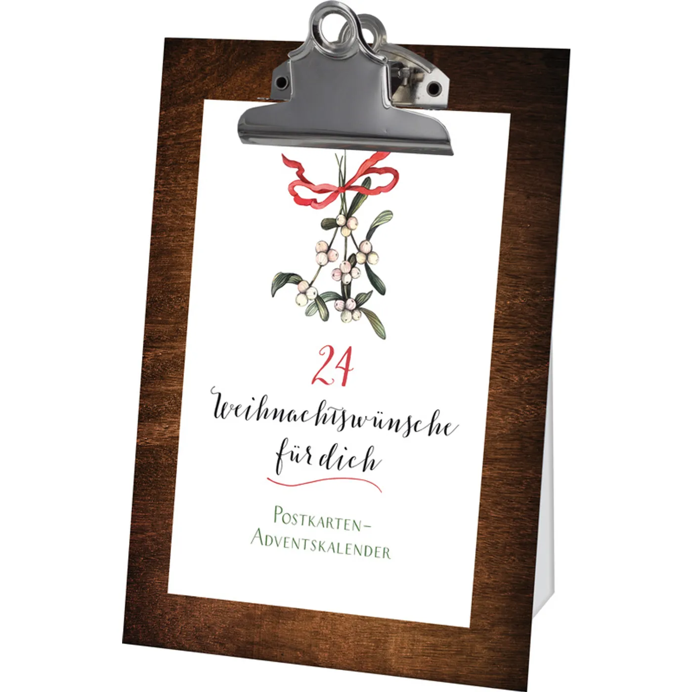 24 Postkarten verkürzen die Wartezeit bis Weihnachten. Aufstellen und freuen. Auf jeder der bezaubernd gestalteten Postkarten ist ein Weihnachtswunsch zu lesen. Auch das passende Klemmbrett lässt sich weiterverwenden als Bilderrahmen oder Notizzettelhalter. Postkarten lassen sich anschließend bestens verschicken oder verschenken.