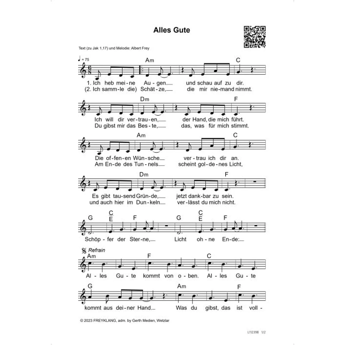 Alles Gute (diese Variante haben Sie gerade ausgewählt) (einstimmig, mit Akkorden, a-moll-Moll) Albert Frey (Komposition, Text) |