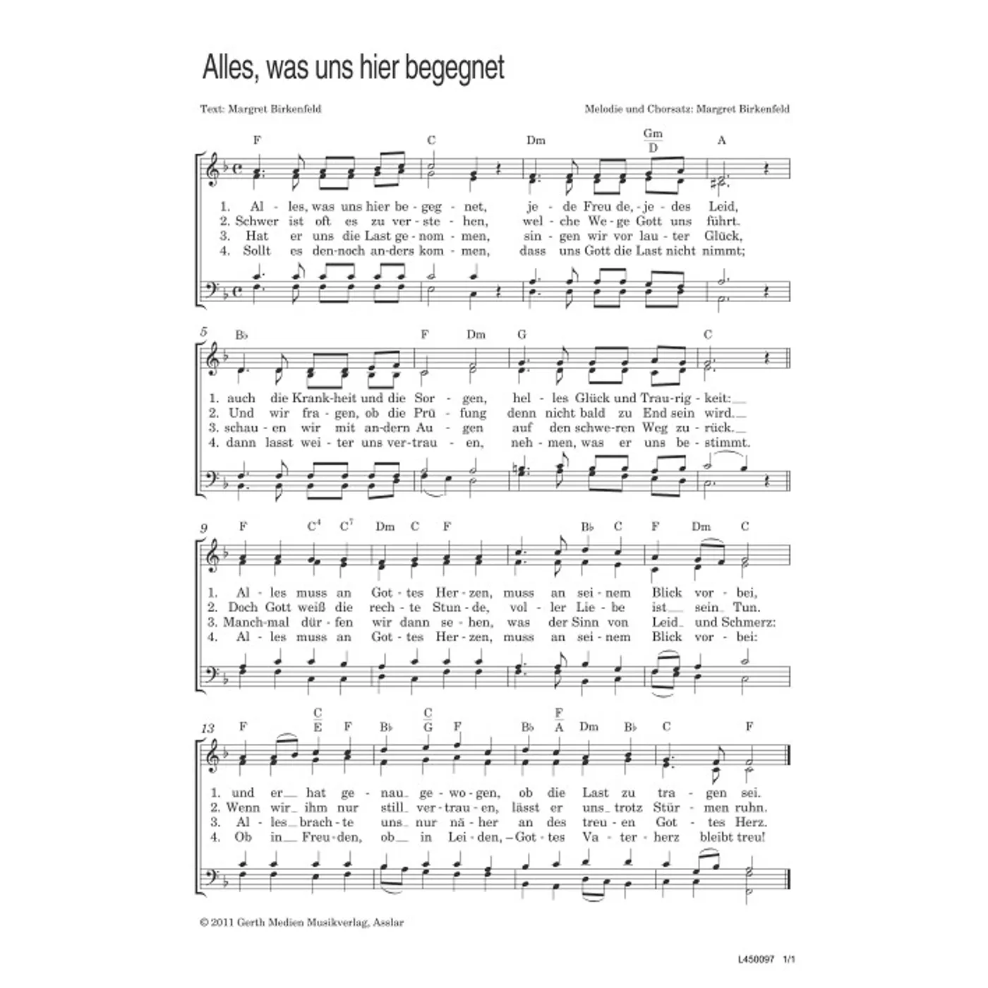 Alles, was uns hier begegnet (diese Variante haben Sie gerade ausgewählt) (traditionell, gemischter Chor, mit Akkorden, vierstimmig, F-Dur) Margret Birkenfeld (Komposition, Text, Bearbeiter) |