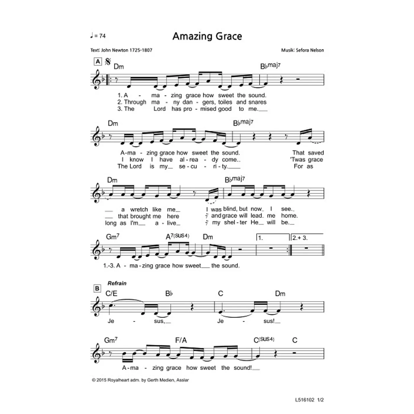 Amazing Grace (diese Variante haben Sie gerade ausgewählt) (modern, einstimmig, mit Akkorden, D-Moll) Sefora Nelson (Komposition, Text), John Newton (Text) |