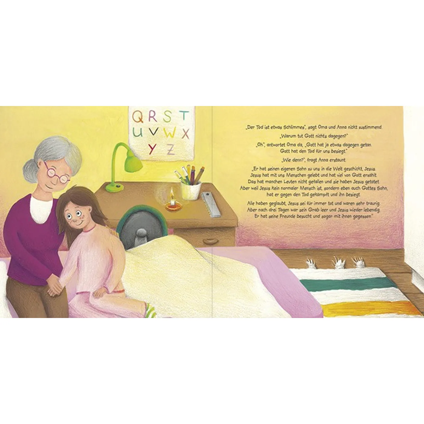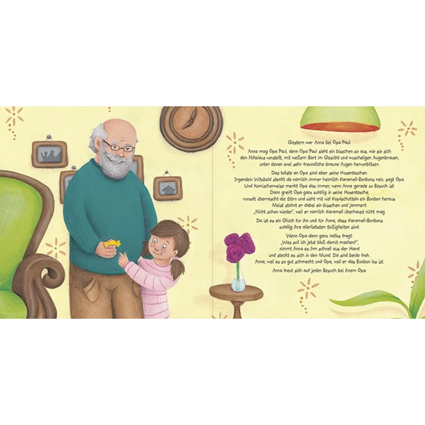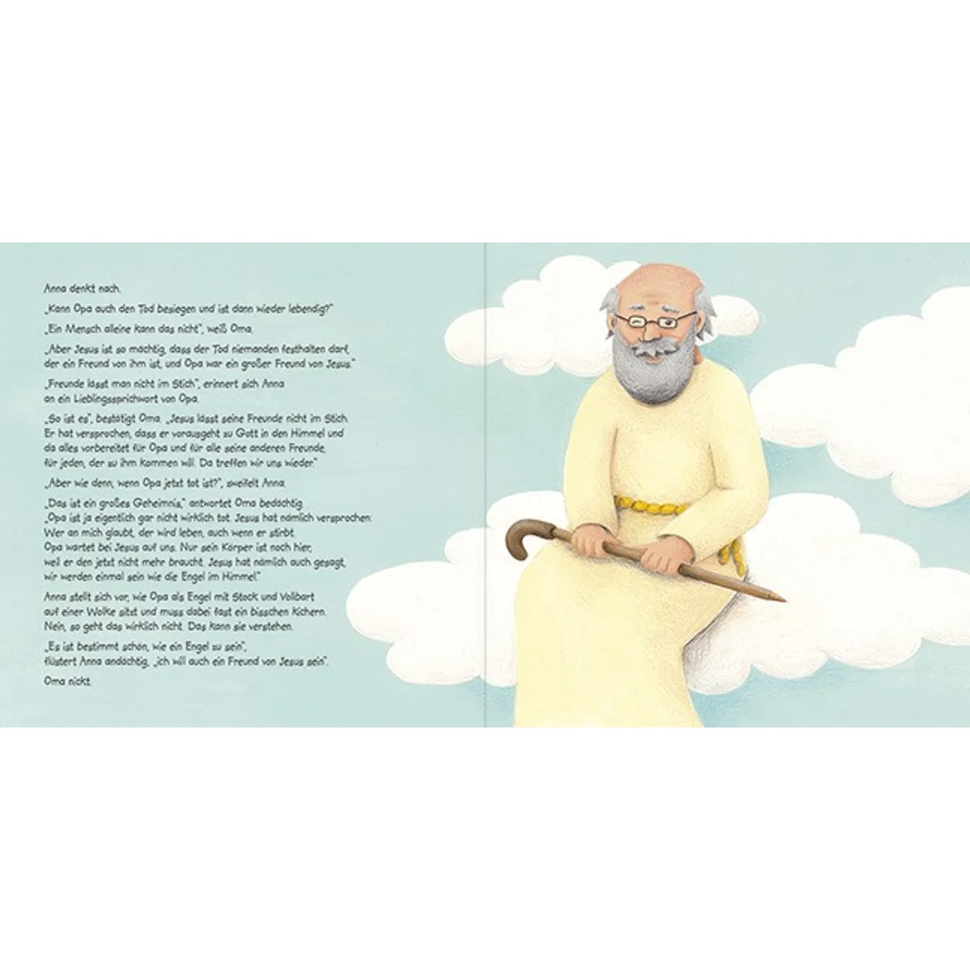 Anna liebt ihren Opa - und Karamell-Bonbons. Und beide gehören für Anna zusammen. Doch eines Tages hört Opas liebes Herz einfach auf zu schlagen. Das macht Anna traurig und wütend. Aber tief im Herzen weiß sie, dass Oma recht hat: Opa ist jetzt bei seinem Freund Jesus. Und dort werden sie sich irgendwann wiedersehen. Das wird ein Fest! Ob Opa dann auch wieder Karamell-Bonbons dabei hat?