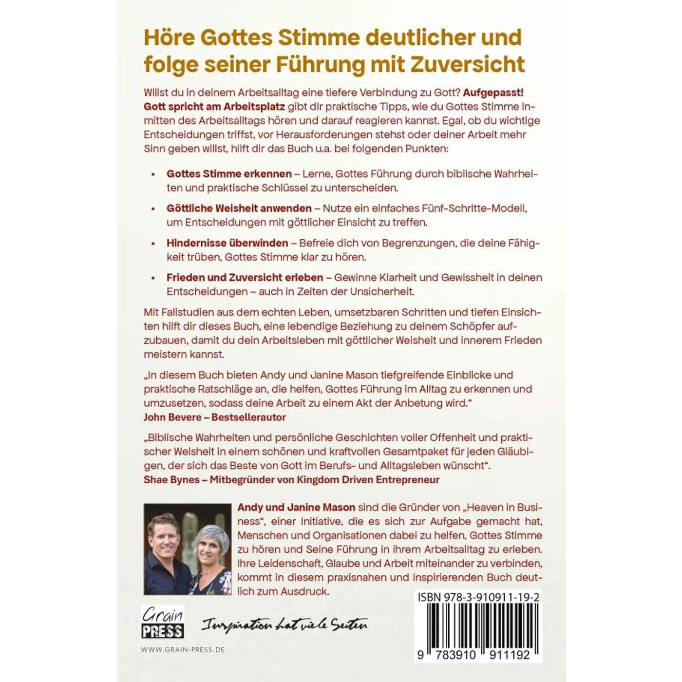 "Aufgepasst! Gott spricht am Arbeitsplatz" gibt dir praktische Tipps, wie du Gottes Stimme inmitten des Arbeitsalltags hören und darauf reagieren kannst. Egal, ob du wichtige Entscheidungen triffst, vor Herausforderungen stehst oder deiner Arbeit mehr Sinn geben willst, hilft dir das Buch u.a. bei folgenden Punkten: o Gottes Stimme erkennen - Lerne, Gottes Führung durch biblische Wahrheiten und praktische Schlüssel zu unterscheiden.