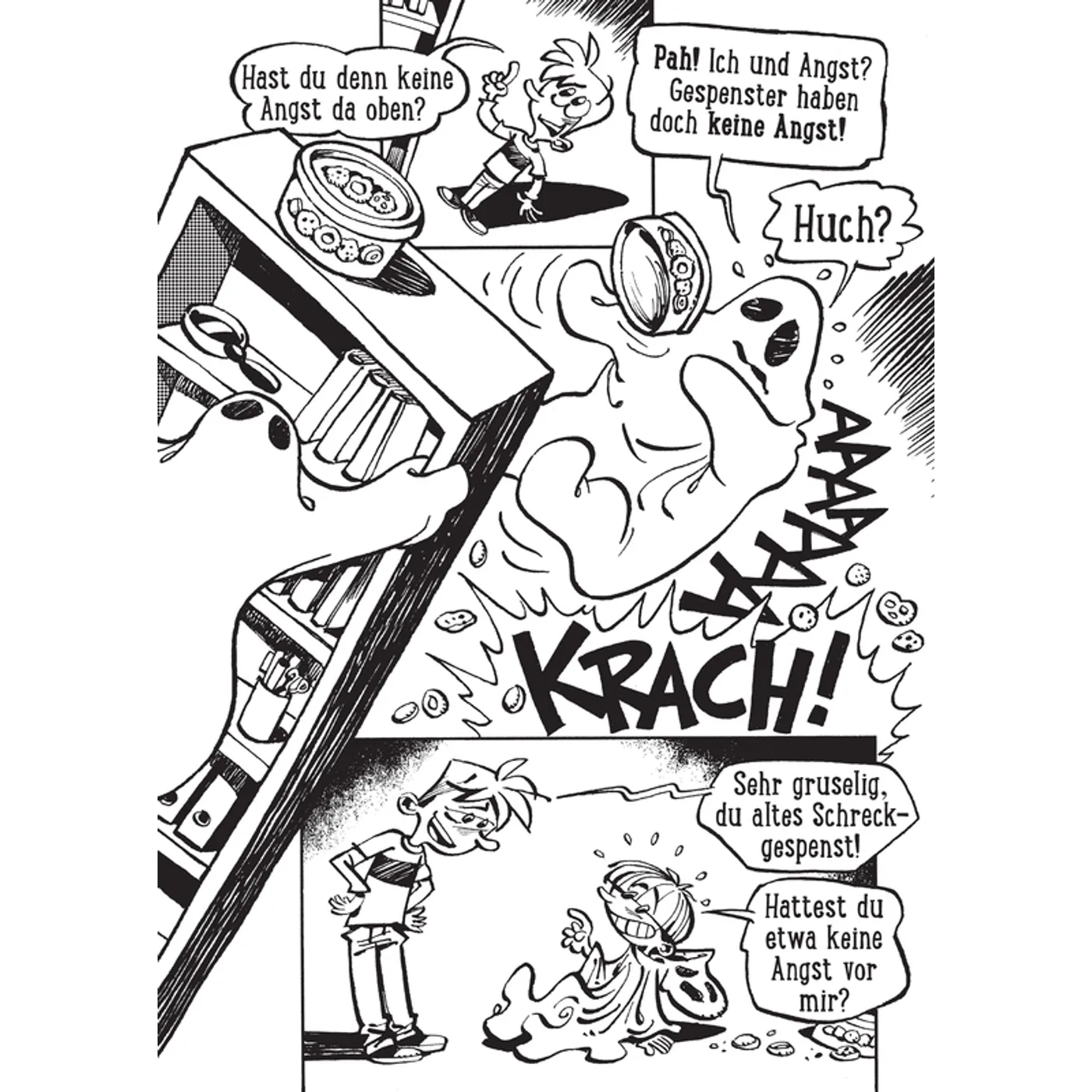 Wir fanden die Comics sehr wild und unübersichtlich, auch "komische Bilder" mit Ketchup Blut...Naja. die Message ist schon ganz gut, aber für 6 jährige viel zu wirr, eher ab 8 würde ich sagen.