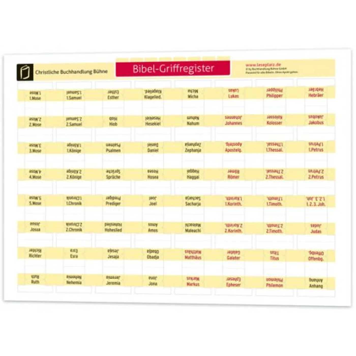 Endlich kein langes Suchen mehr, um ein bestimmtes Buch innerhalb der Bibel zu finden; vor allem, wenn man als Neuling die Reihenfolge sämtlicher Bücher noch nicht so "intus" hat...