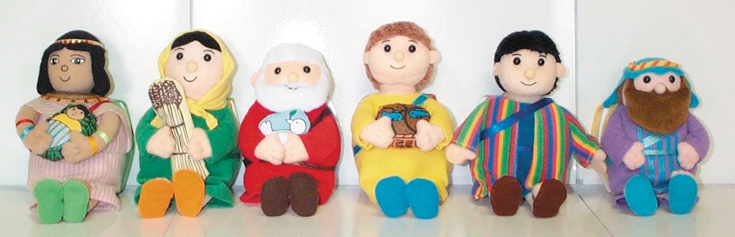 Neu - und einfach genial: Bibelpuppen! Josph trägt einen bunten Mantel, die Prizessin hält ein kleines Körbchen mit Mose in den Händen, Ruth kommt von der Ernte nach Hause ...