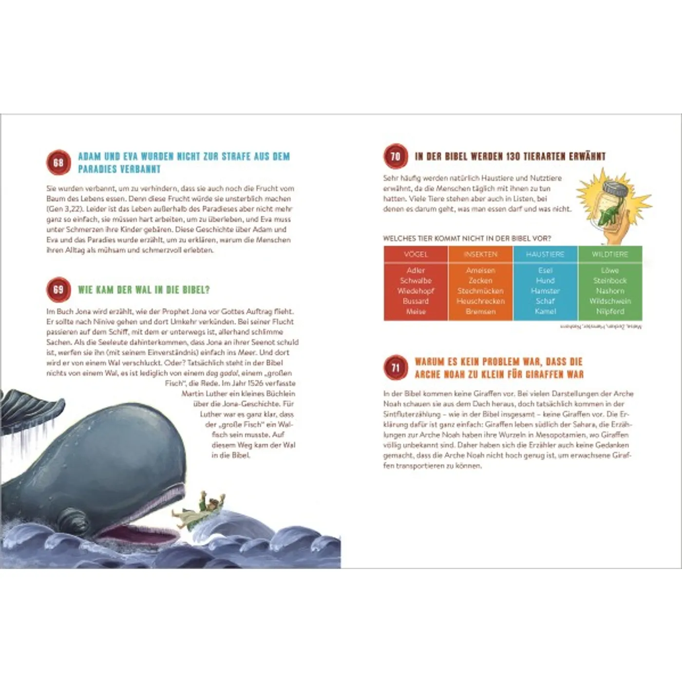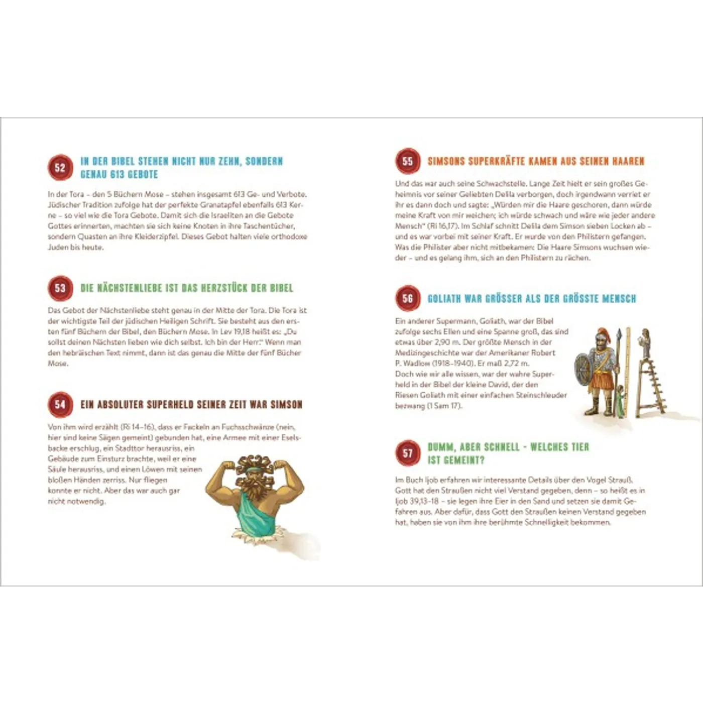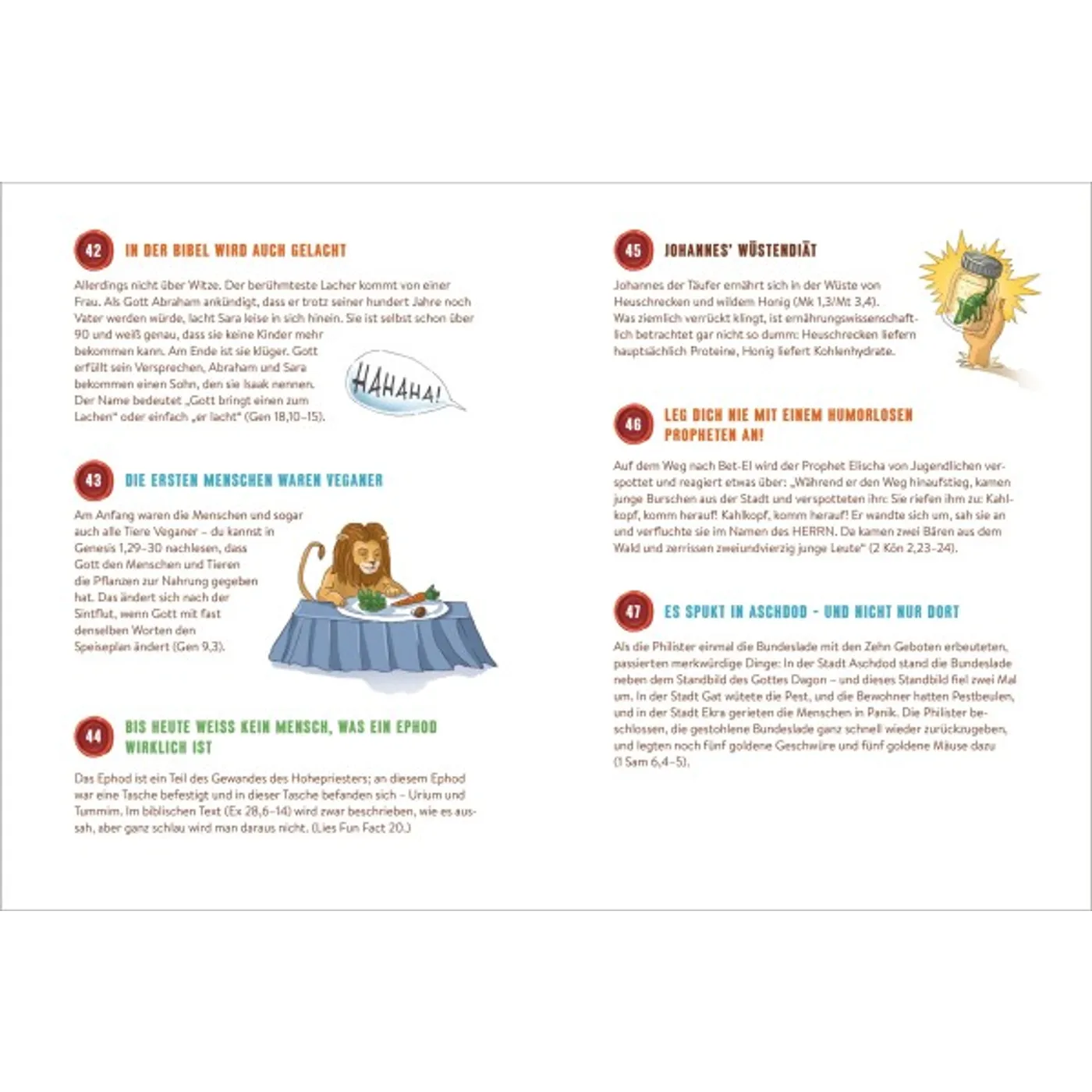 Lustiges, triviales und überraschendes Faktenwissen rund um und aus der Bibel für alle, die sich gern amüsieren. Egal, ob Angeberwissen oder Quizfragenfutter, hier findet sich ein unterhaltsames Sammelsurium an Informationen, die nicht jeder kennt. Oder das, was jeder zu wissen glaubt, überraschend widerlegt. Bibelwissen in über 100 kurzen, knackigen Fakten. Informativ aufbereitet, um sich spielerisch Informationen anzueignen. Für Besserwisser jeden Alters spannend.