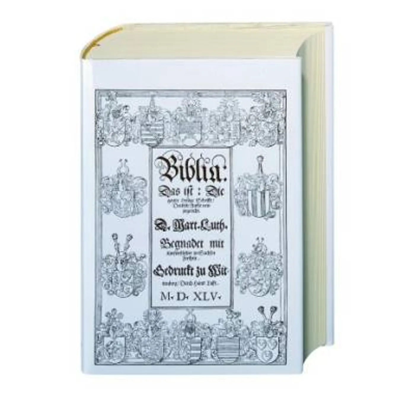 Luthers Deutsche Bibel, Ausgabe letzter Hand von 1545. Der vorliegende Band ist eine faksimilierte Handausgabe nach dem im Besitz der Deutschen Bibelgesellschaft befindlichen Originaldruck. Mit zahlreichen Initialen des Meisters MS, an deren Gestaltung Luther selbst mitgewirkt hat.