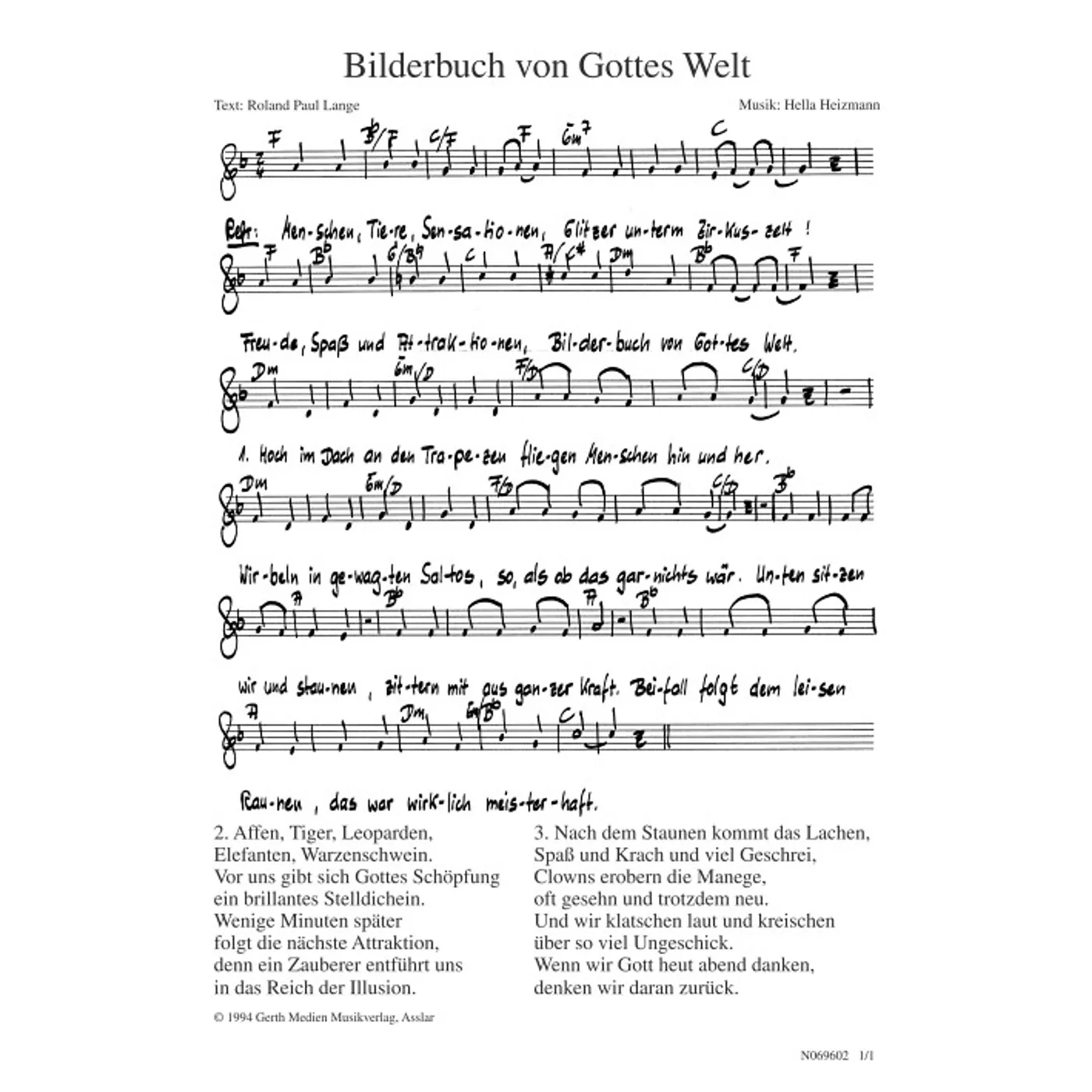 Bilderbuch von Gottes Welt (diese Variante haben Sie gerade ausgewählt) (einstimmig, mit Akkorden, F-Dur) Hella Heizmann (Komposition), Roland Paul Lange (Text) |