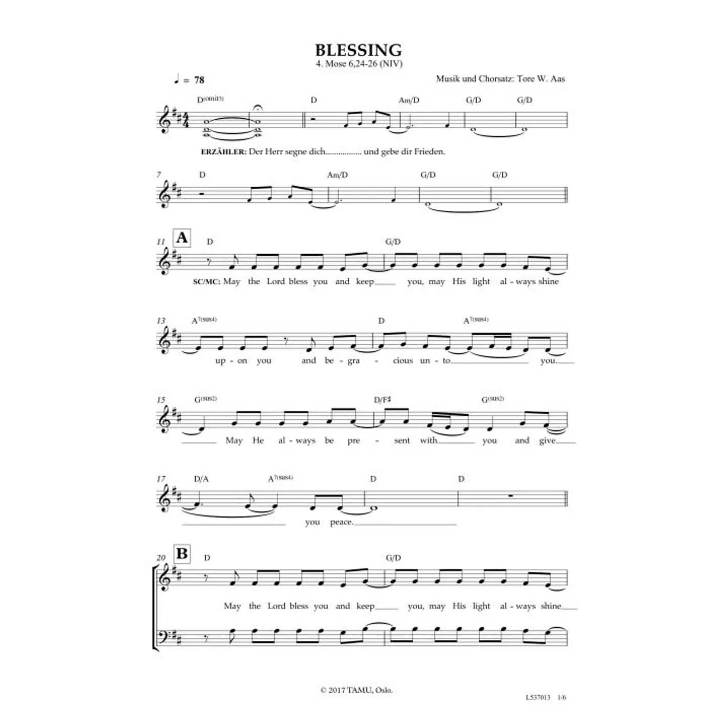 Blessing (diese Variante haben Sie gerade ausgewählt) (modern, gemischter Chor, mit Akkorden, vierstimmig, D-Dur) Tore W. Aas (Komposition, Chorsatz) |