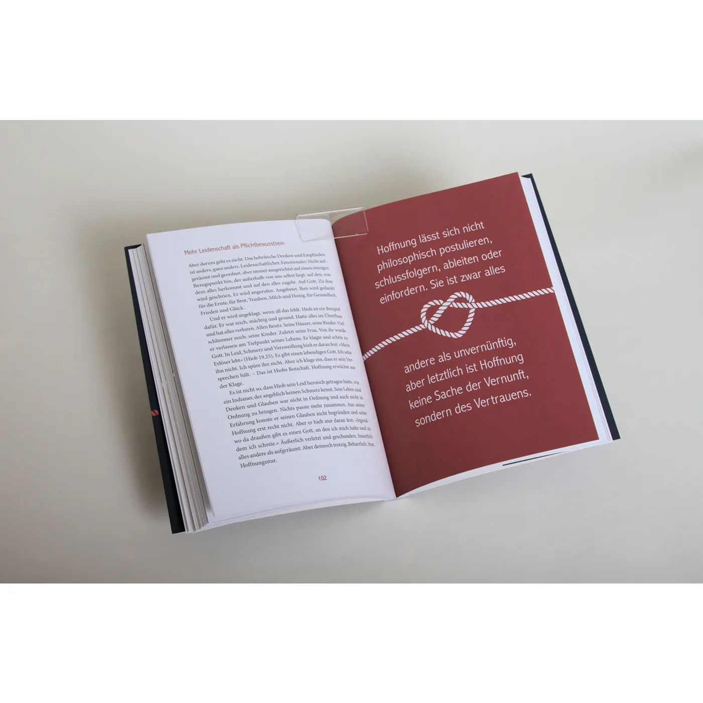 Das Buch lässt sich gut lesen, ist verständlich geschrieben und interessant und spricht mich an. Die Beispiele aus der Bibel und aus dem Leben sind gut gewählt. Sehr gut gefällt mir auch die Gestaltung des Buches, in dem im fortlaufenden Text wichtige Sätze farblich hervorgehoben sind. Ebenso gibt es immer wieder komplett farbige Seiten mit weißer Schrift und dem Seil, dass zu einem Herz geschlungen ist.