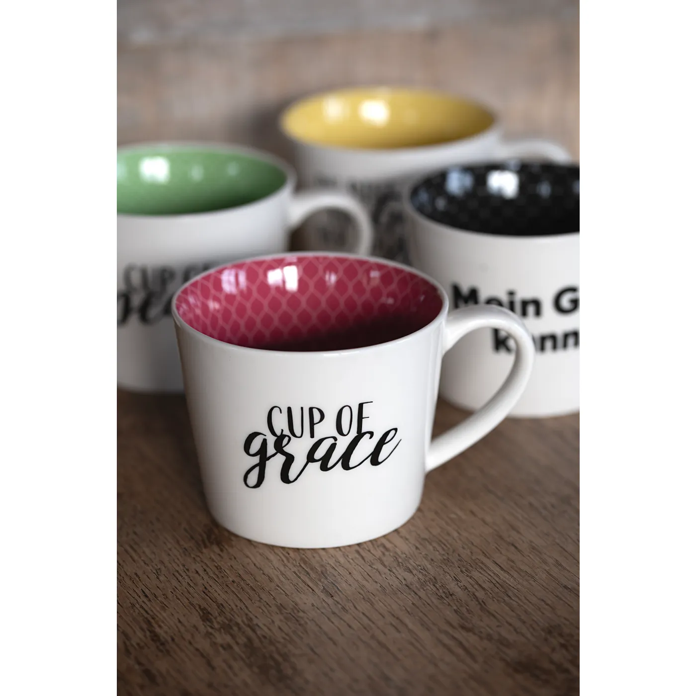 Es handelt sich um ein von Hand dekoriertes Produkt. Die Tassen können daher in Form und Farbe variieren.
