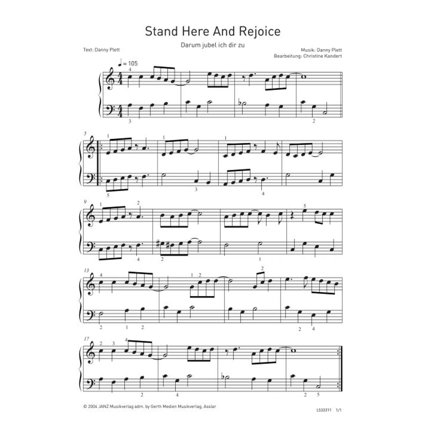 Darum jubel ich dir zu (modern, Klavier, Klavierpartitur, Partituren) Danny Plett (Komposition, Text), Christine Kandert (Klaviersatz), Ute Meißner (Übersetzung) | modern, Klavier, Klavierpartitur, Partituren | 2,80 € | ||