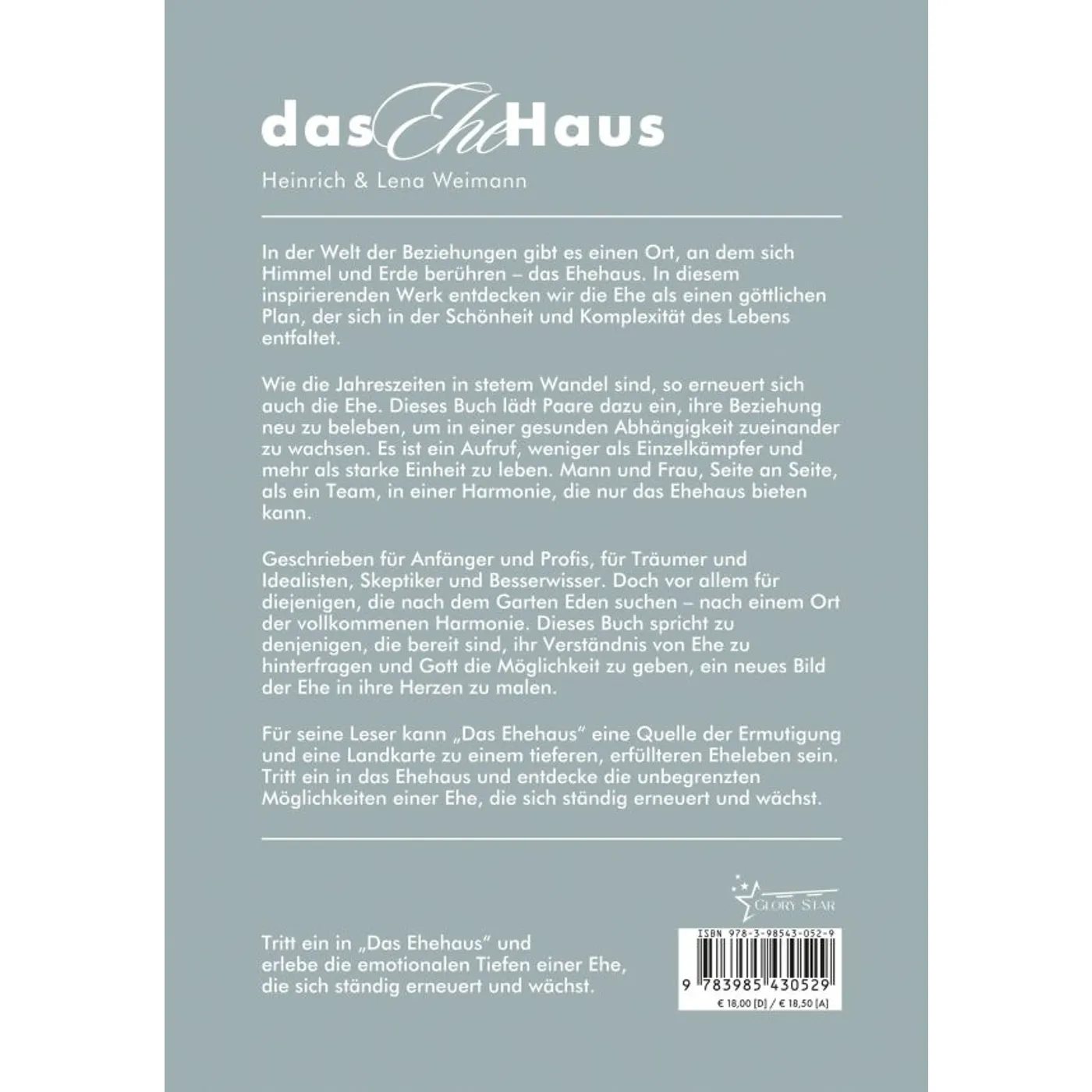 Wie die Jahreszeiten im steten Wandel sind, erneuert sich auch die Ehe. Das Buch fordert dazu auf, weniger als Einzelkämpfer und mehr als starke Einheit zu leben. Mann und Frau, Seite an Seite, als ein Team, in einer Harmonie, die nur das Ehehaus bieten kann.