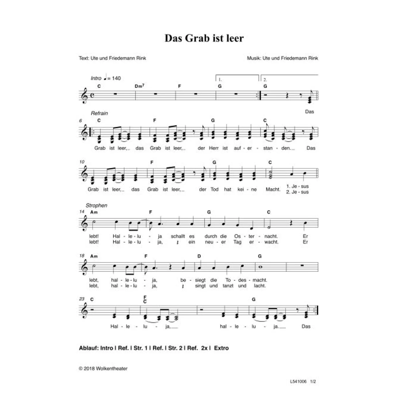 Das Grab ist leer (diese Variante haben Sie gerade ausgewählt) (dreistimmig, mit Akkorden, C-Dur) Friedemann Rink (Komposition, Text), Ute Rink (Komposition, Text) |