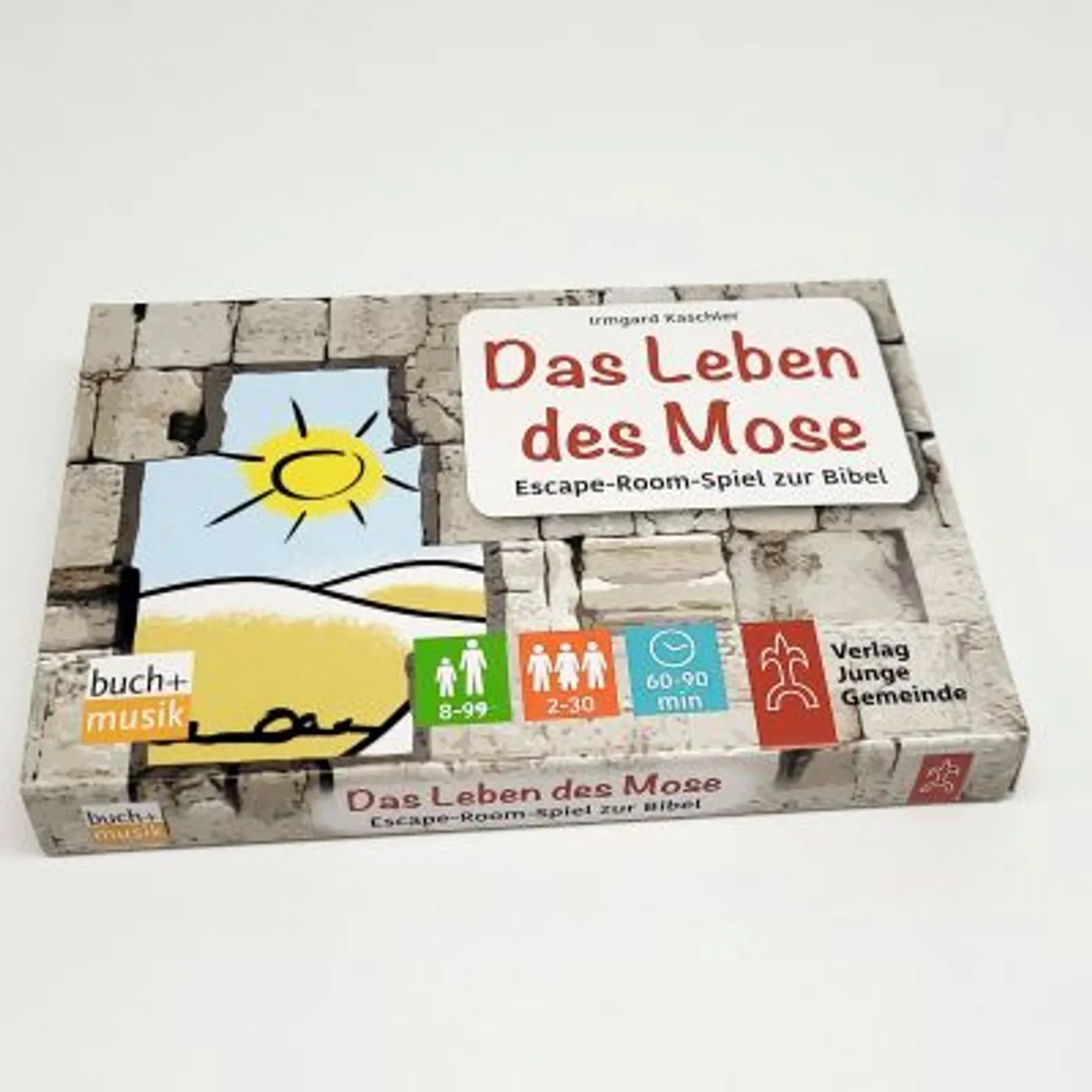 Das Leben des biblischen Mose spielerisch und kindgerecht kennenlernen! Gemeinsam werden durch Knobeln und Raten viele Codes als Escape-Room-Spiel geknackt, um mit Mose und dem Volk Israel aus Ägypten auszuziehen. Von Moses Geburt bis zum biblischen Wunder der Meeresspaltung können Kinder ab 8 Jahre spannende Rätsel lösen und sich somit befreien.