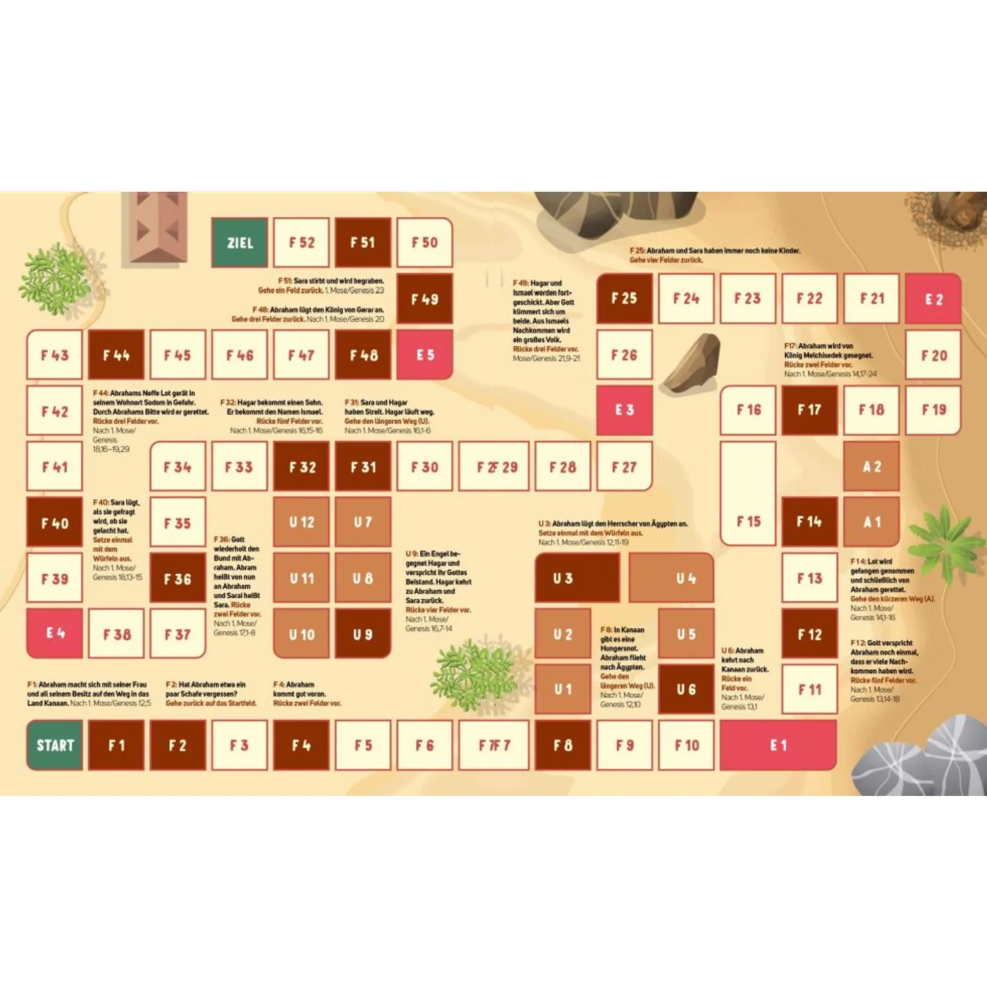 Das Buch enthält 20 Kapitel bzw. 19 Geschichten aus dem Alten Testament, denn das 20 Kapitel greift das 4 Kapitel „Noah und die Arche“ wieder auf. Die Bibelgeschichten wurden in einer kindgerechten Erzählung umgesetzt, sei es durch Rätsel, Spiele oder eine moderne Art der Geschichte. Insofern ist es nicht nur ein Lesebuch, sondern auch ein Beschäftigungsbuch unterschiedlicher Art. Mit einem QR-Code kann man sich manche Bilder von der Webseite des Verlages herunterladen, damit man das Buch nicht zerschneiden muss, was ich für eine gute Idee halte. Bei dem Würfelspiel wurde aber nicht bedacht, dass die Buchseiten wieder zufallen bzw. die Spielfiguren im Knick nicht stehen können, das verdirbt doch etwas den Spielspaß.