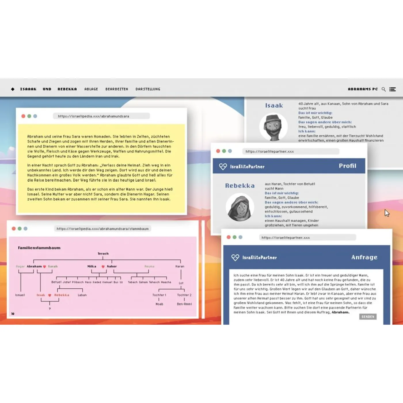 So gibt es etwa das Jakob und Esau Kochbuch, ein Quartettspiel mit Helden und Heldinnen aus jener Zeit oder das Freundebuch von Jonatan.