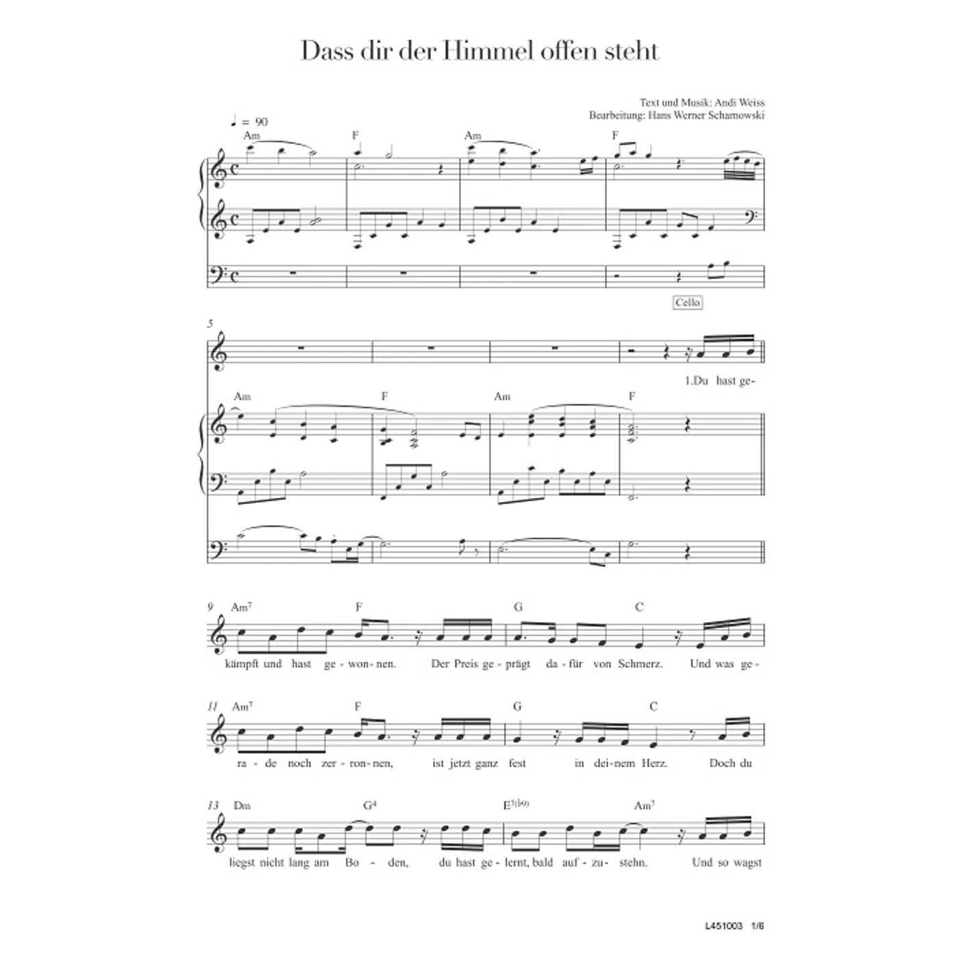 Dass dir der Himmel offen steht (diese Variante haben Sie gerade ausgewählt) (modern, Klavier, einstimmig, mit Akkorden, a-moll-Moll) Andi Weiss (Komposition, Text), Hans Werner Scharnowski (Klaviersatz) |