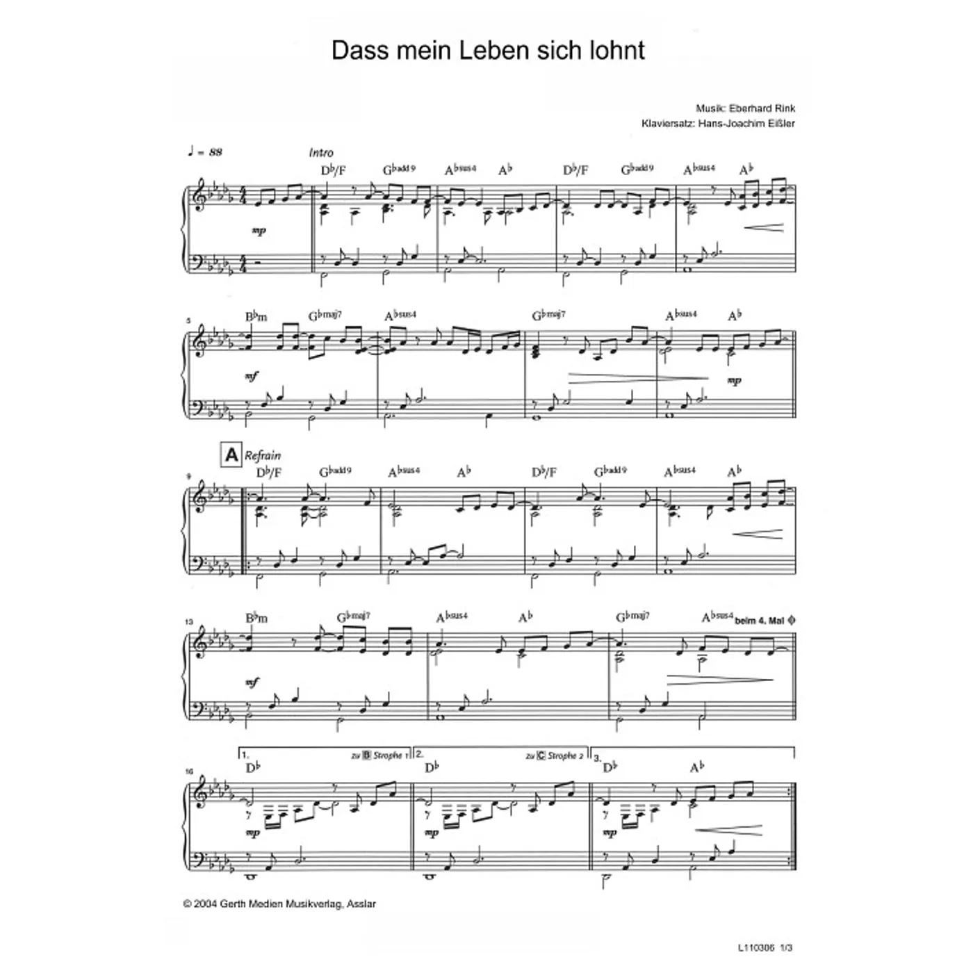 Dass mein Leben sich lohnt (diese Variante haben Sie gerade ausgewählt) (modern, Klavier, Klavierpartitur, Partituren, mit Akkorden, Des-Dur) Eberhard Rink (Komposition), Hans-Joachim Eißler (Klaviersatz) |