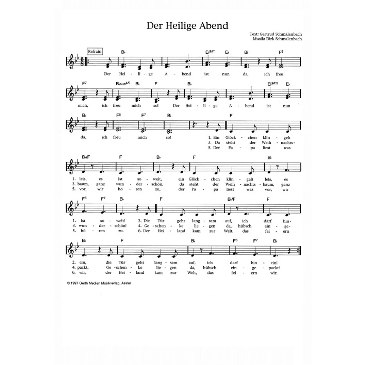 Der Heilige Abend (diese Variante haben Sie gerade ausgewählt) (mit Akkorden, zweistimmig, B-Dur) Dirk Schmalenbach (Komposition, Bearbeiter), Gertrud Schmalenbach (Text) |