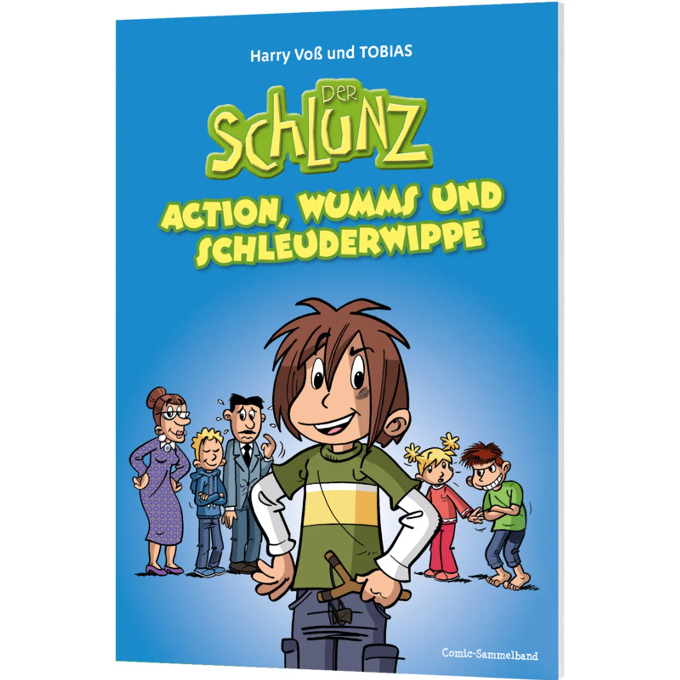 "Der Schlunz - Action, Wumms und Schleuderwippe" von Harry Voß ist ein lustiger Comic-Sammelband mit Schlunz Geschichten aus der Schlunz locker bleiben und der Schlunz streiche zu verkaufen Bände, zum schmunzeln und lachen.