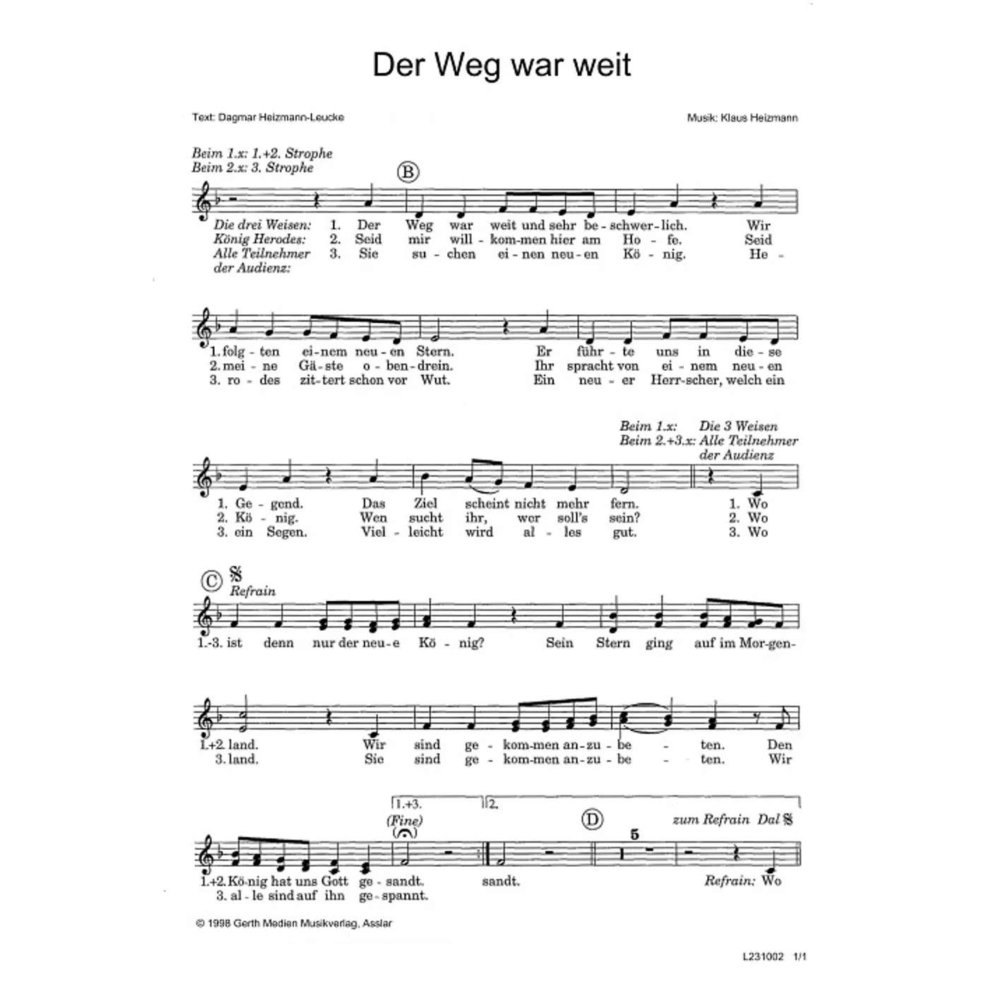 Der Weg war weit (diese Variante haben Sie gerade ausgewählt) (modern, einstimmig) Klaus Heizmann (Komposition), Dagmar Heizmann-Leucke (Text) |
