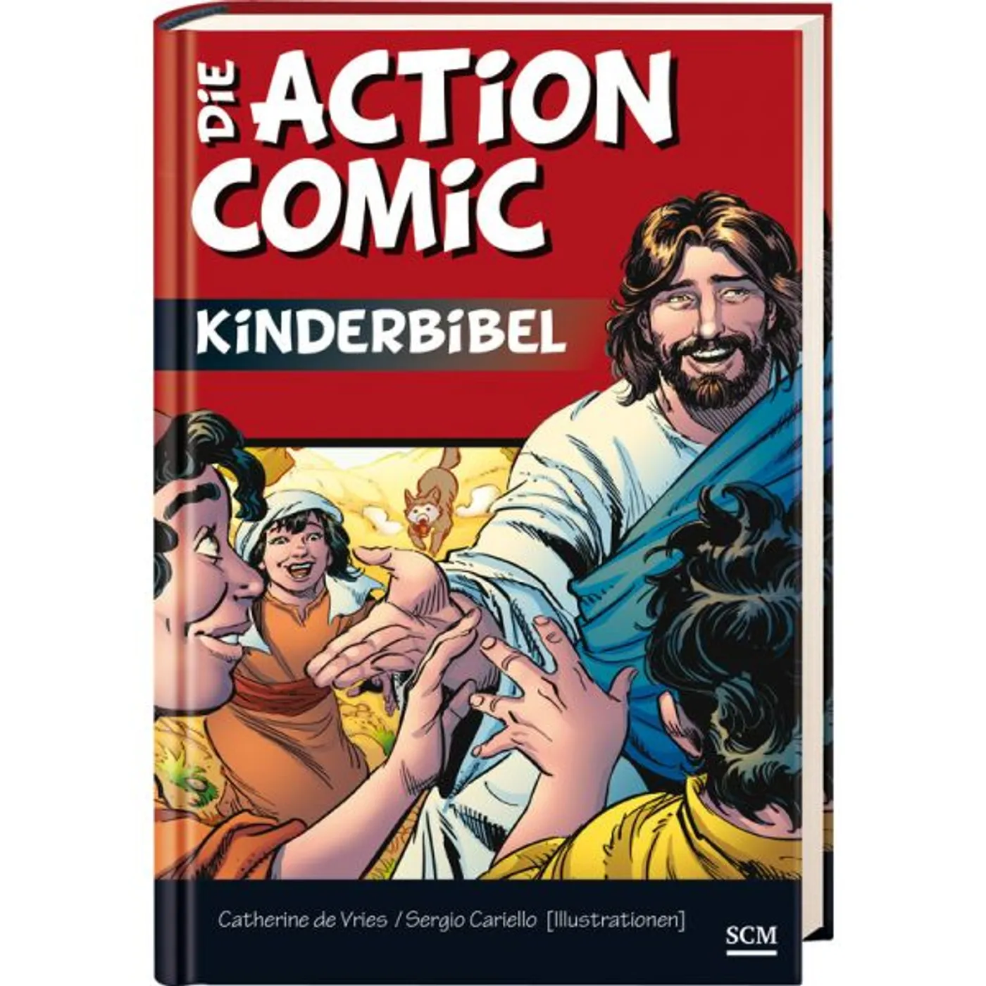 Die Action-Comic-Bibel geschrieben von Cathrine DeVries und illustriert von Sergio Cariello soll Kinder ab 5 Jahre ansprechen. Sie hat viele bunte Comicbilder und kurze Texte.