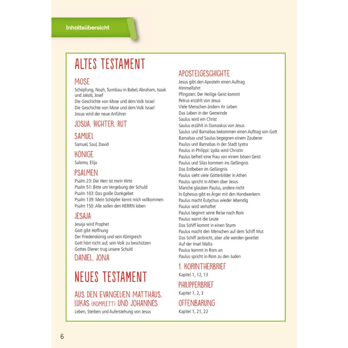 Die Einsteigerbibel enthält Texte aus diesen biblischen Büchern: