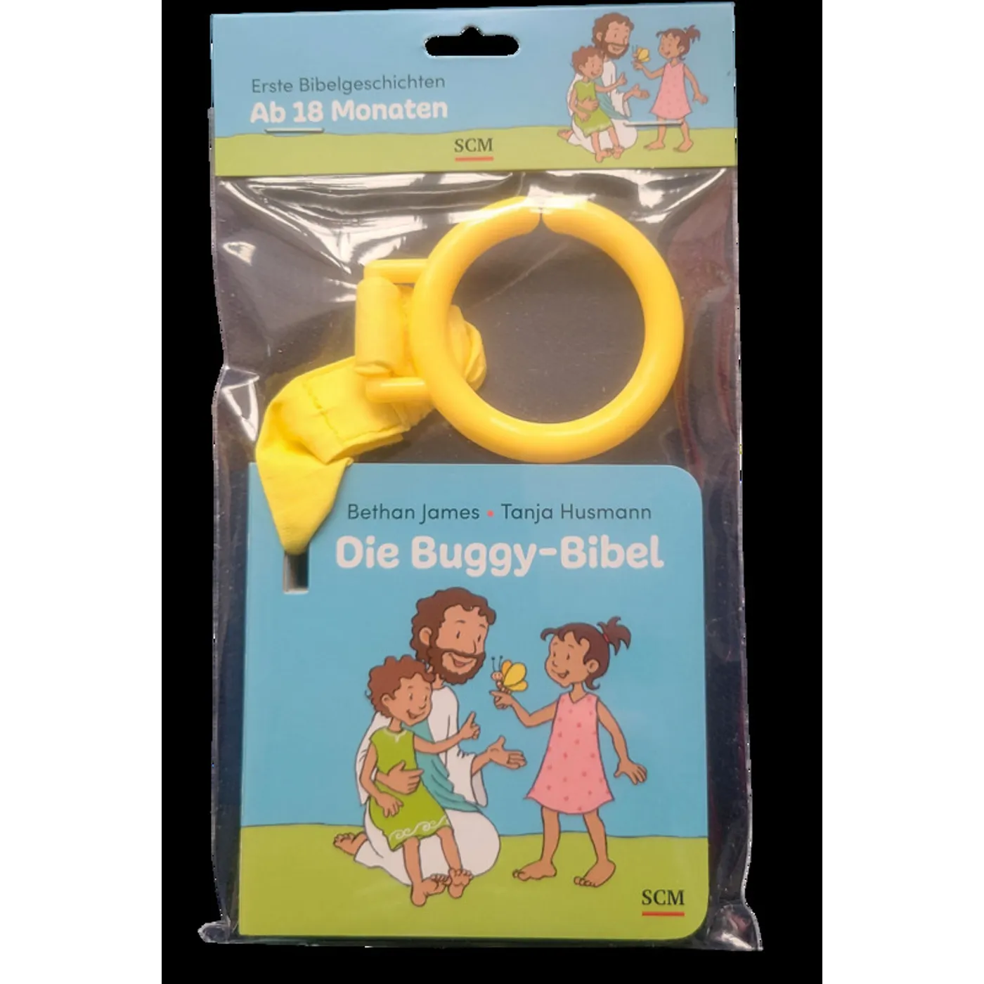 -Band durch das Buch, -den gelben Clip am Buggy einhaken und der Spaziergang mit Buch kann losgehen. Die Mini-to-go-Bibel für die jüngeren Kinder ist aus stabiler Pappe und hat zur Sicherheit abgerundete Ecken. Das Format (im Quadrat 9 X 9cm) ist für kleine Kinderhände griffig und die Seiten lassen sich gut umblättern. Beschrieben und bebildert werden die Schöpfungsgeschichte, Noah und die Arche, Jesus wird geboren, die Geschichte vom guten Hirten. Der Text „Gott liebt Kinder“, Zitat: „Kinder sind für Jesus wichtig. Er nimmt sich Zeit für sie und zeigt, dass Gott uns alle sehr lieb hat“, schließt die Sammlung ab.