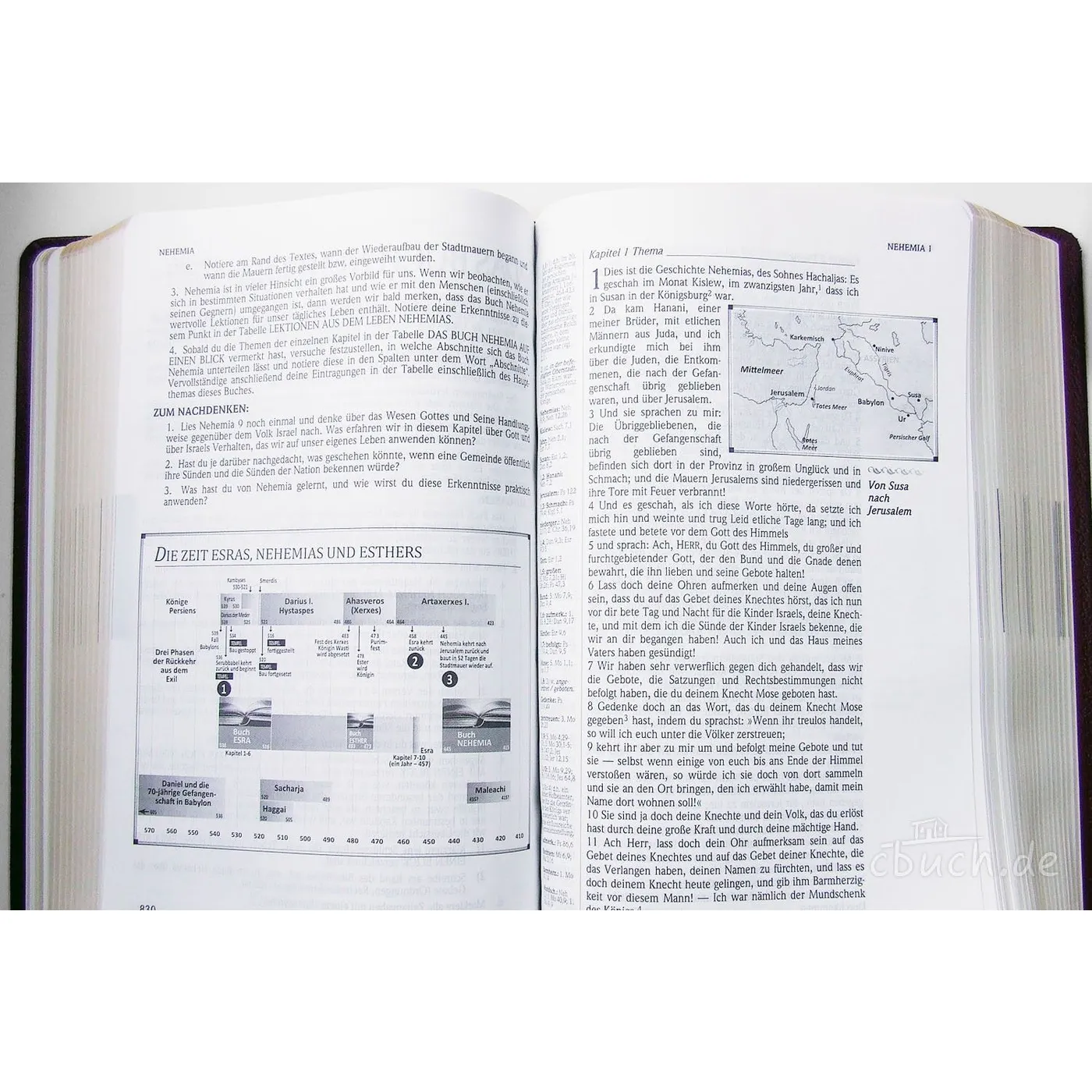 Alles, was Claus am 13.11.2021 und Claudia am 18.03.2022 veröffentlichten, kann ich voll bestätigen. Das "Innenleben" überzeugt und erfreut mich. Anregungen und Hilfestellungen zum Graben in der Tiefe biblischer Texte und ausreichend Platz für eigene Notizen sowie eine gute Übersichtlichkeit schenken Freude am Umgang mit dieser Bibel.