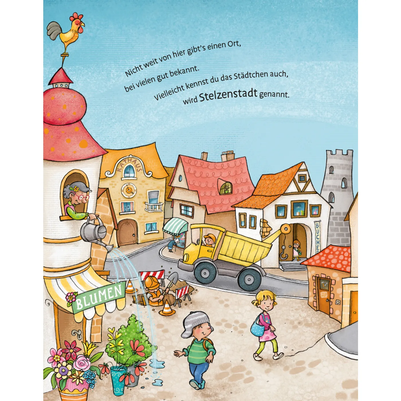 Dieses Bilderbuch spricht mit seinen wunderschönen Illustrationen und starken Farben bereits die Kleinsten an. Und auch mir als Mama hat es sehr gut gefallen. Auf der ersten Seite wird Stelzen vorgestellt und es gibt viel zu entdecken. Auf den folgenden Seiten sind weniger ablenkende Details, was den Fokus auf die Geschichte richtet. Die Farben sind sehr passend gewählt und die Schrift rundet den Gesamteindruck ab, da sie immer wieder in verschiedenen Größen und geschwungen ist. Dennoch lässt es sich gut lesen.