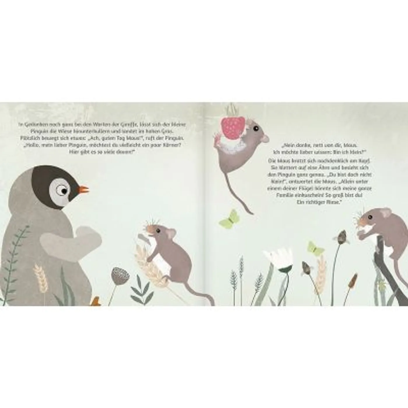 Grundlage der Geschichte ist der Wert der Schöpfung der eigenen Person, wie er schon in der Bibel in Jesaja 64,7 vermittelt wird. Dieser Bibelvers wird auch zu Beginn des Buches zitiert. Danach folgt die Geschichte um den kleinen Pinguin, der sich fragt, wie er denn eigentlich ist. So besucht er auf seinem Spaziergang die große Giraffe und erkundigt sich, ob er denn auch groß ist. Aber das verneint die Giraffe. Nun besucht der Pinguin noch weitere Tiere und versucht durch Vergleiche herauszubekommen, wie er denn nun ist. Doch er muss lernen, dass die Antwort gar nicht so einfach ist, denn er ist nicht so wie die anderen Tiere.
