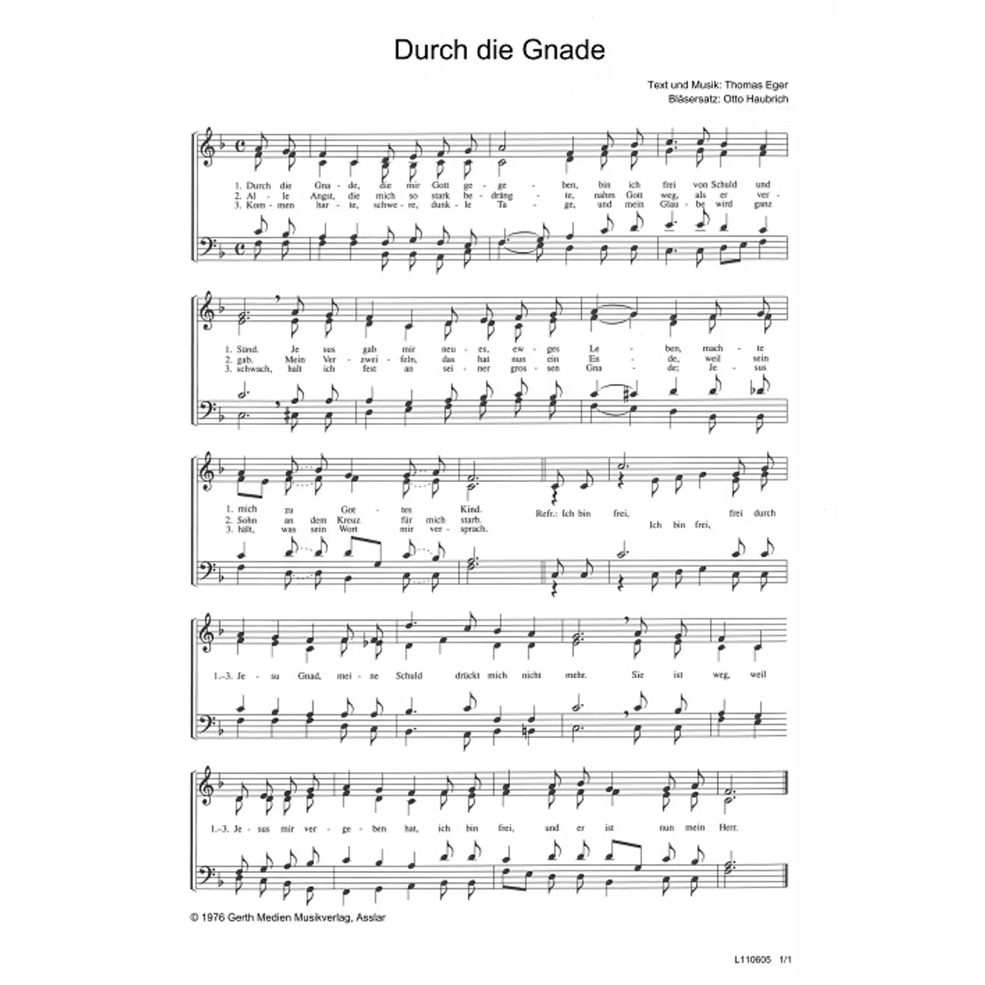 Durch die Gnade (diese Variante haben Sie gerade ausgewählt) (traditionell, Bläser, Bläserpartitur, Partituren, vierstimmig) Thomas Eger (Komposition, Text), Otto Haubrich (Bläsersatz) |