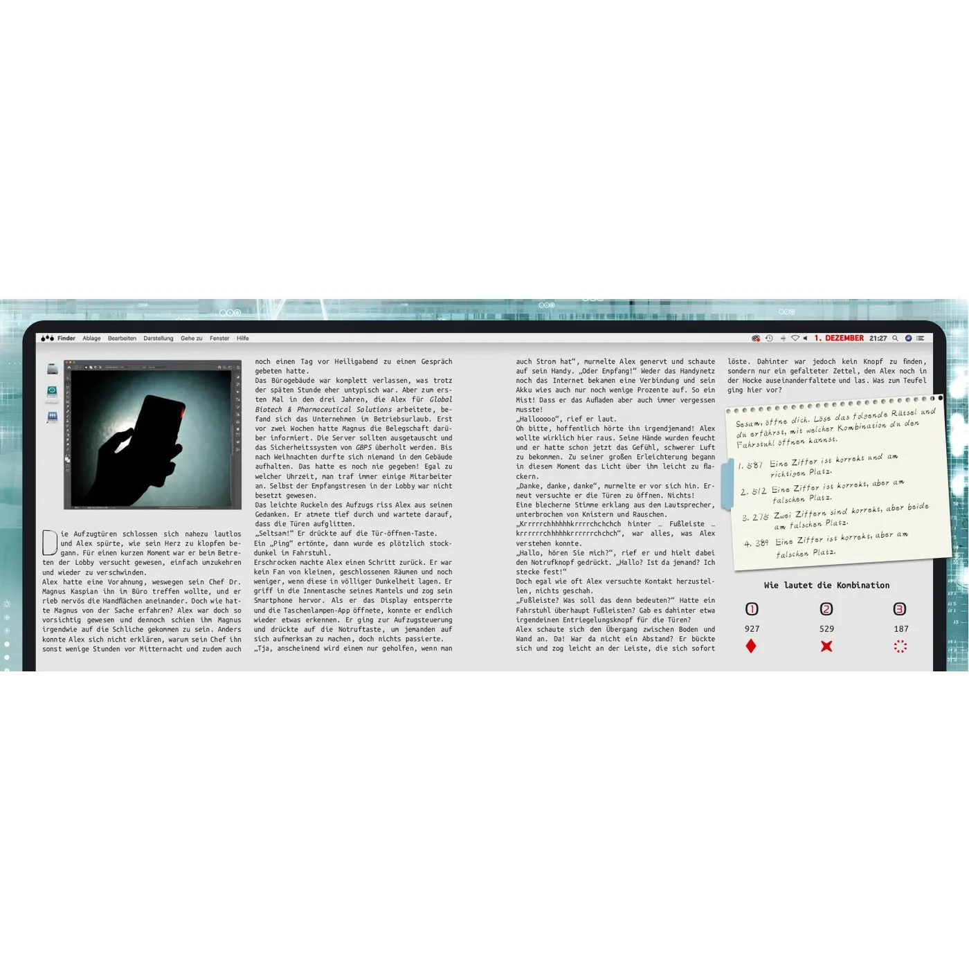 • In 24 Kapiteln wird die spannende Escape Room Story erzählt.