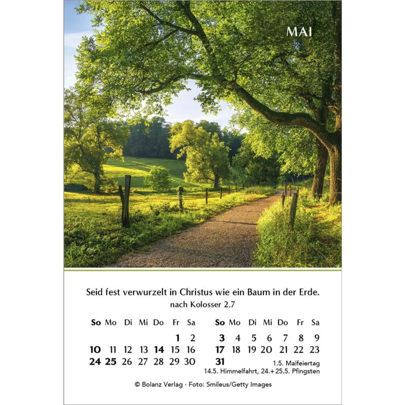 Dank des praktischen Aufstellers kannst Du den Kalender jederzeit präsent halten und Dich täglich an den ermutigenden Bildern und Worten erfreuen. Lass die Hoffnung durch Deine Tage strahlen und genieße ein ganzes Jahr voller inspirierender Momente!