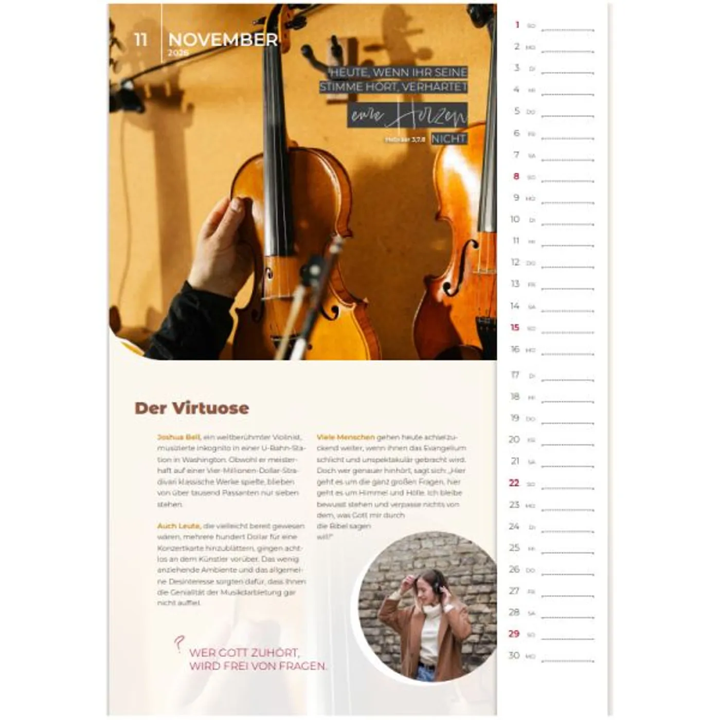 Ein beliebter Wandkalender/Monatskalender (nicht nur) für junge Leute. Mit tollen Fotos, vielen interessanten Gedankenanstößen, Platz für persönliche Termine, Sonderseiten mit hilfreichen Tipps und Ferien in der Übersicht. Für Verteilzwecke bestens geeignet.