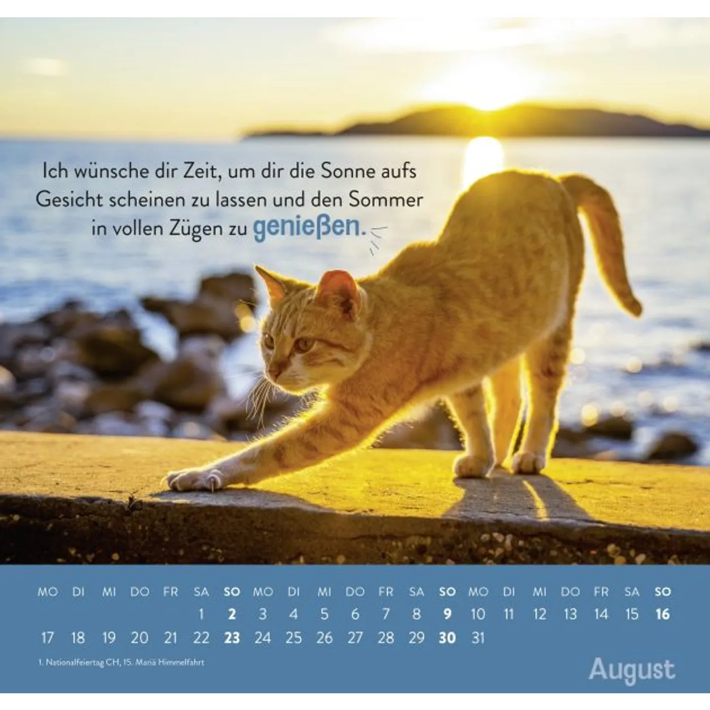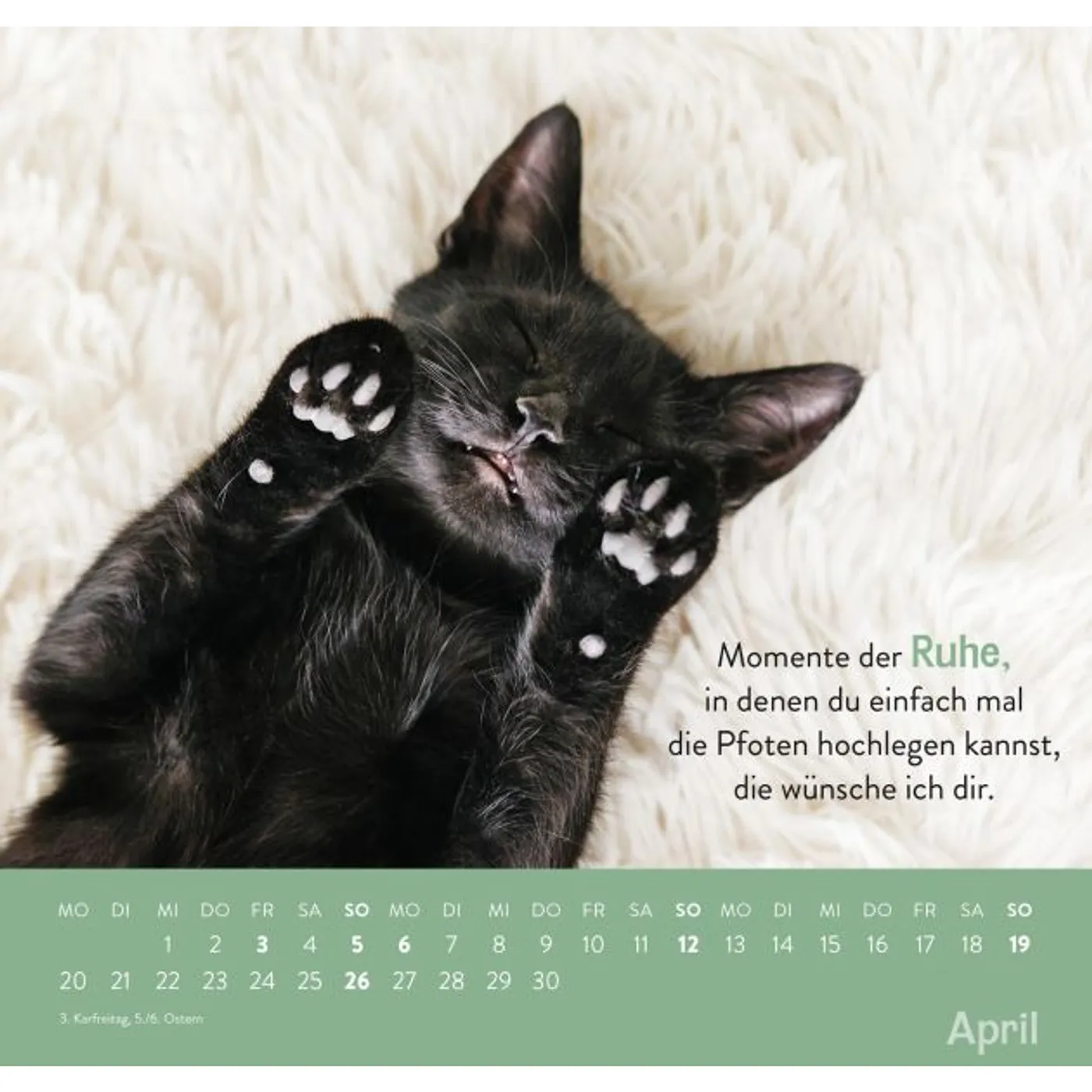 Der entspannte Katzenkalender 2026 hilft dabei, den Alltagsstress einfach mal zu vergessen, dem Beispiel der niedlichen Samtpfoten zu folgen und gechillt abzuhängen. 12 süße Katzen-Fotos mit Sprüchen und Zitaten, die zum Entspannen einladen, machen den Wandkalender Einfach mal abhängen 2026 zum dekorativen Hingucker in jedem Raum.