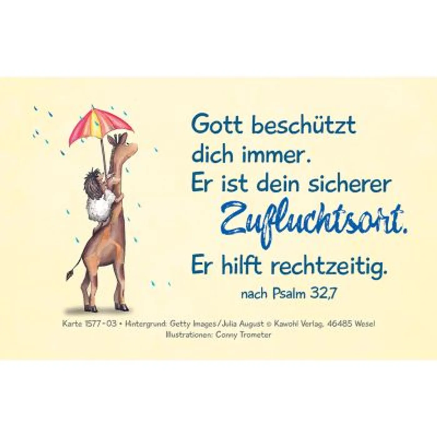 62 frei formulierte Bibelverse, in für Kinder verständlicher Sprache, schenken Ermutigung und Wegweisung. Die niedlich illustrierten Tiere von Conny Trometer unterstreichen die Bedeutung der Bibelworte und erfreuen die Herzen von kleinen und großen Kindern.