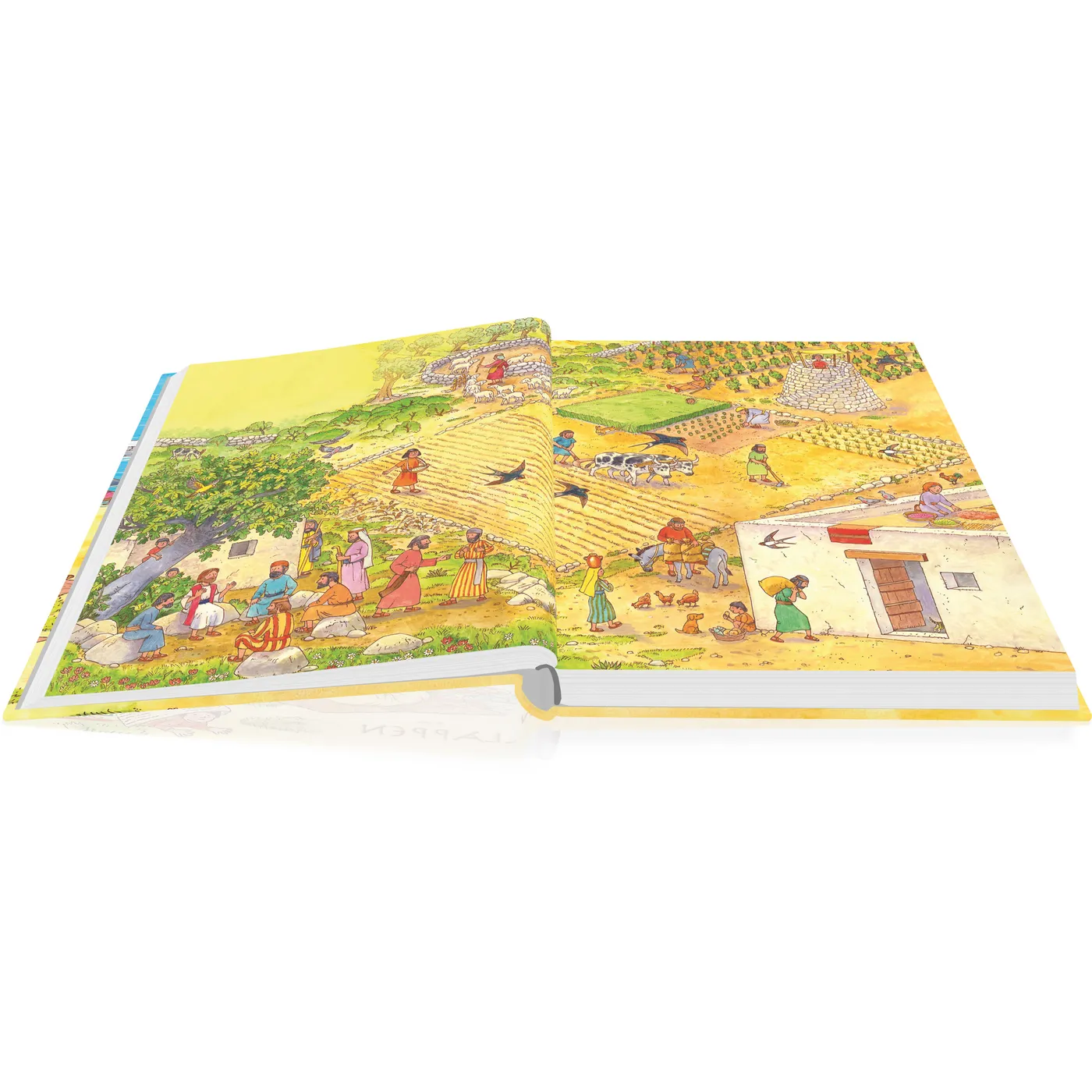 In diesem kunterbunten Wimmelbuch gibt es ganz besonders viel zu entdecken! Denn auf den acht Doppelseiten gibt es zusätzlich noch viele Klappen, hinter denen zahlreiche Überraschungen und Informationen stecken. Dabei können Vierjährige schon viel mit dem Wimmelbuch anfangen und auch für Achtjährige ist es noch sehr interessant. Die Kinder finden ganz spielerisch Antworten auf Fragen wie: Wie lebten eigentlich Jesus und seine Freunde? Wie sah es in der Stadt aus, in der Schule oder der Werkstatt? Womit spielten die Kinder? Welcher Arbeit gingen die Erwachsenen nach? Ideal auch für Kindergottesdienste!