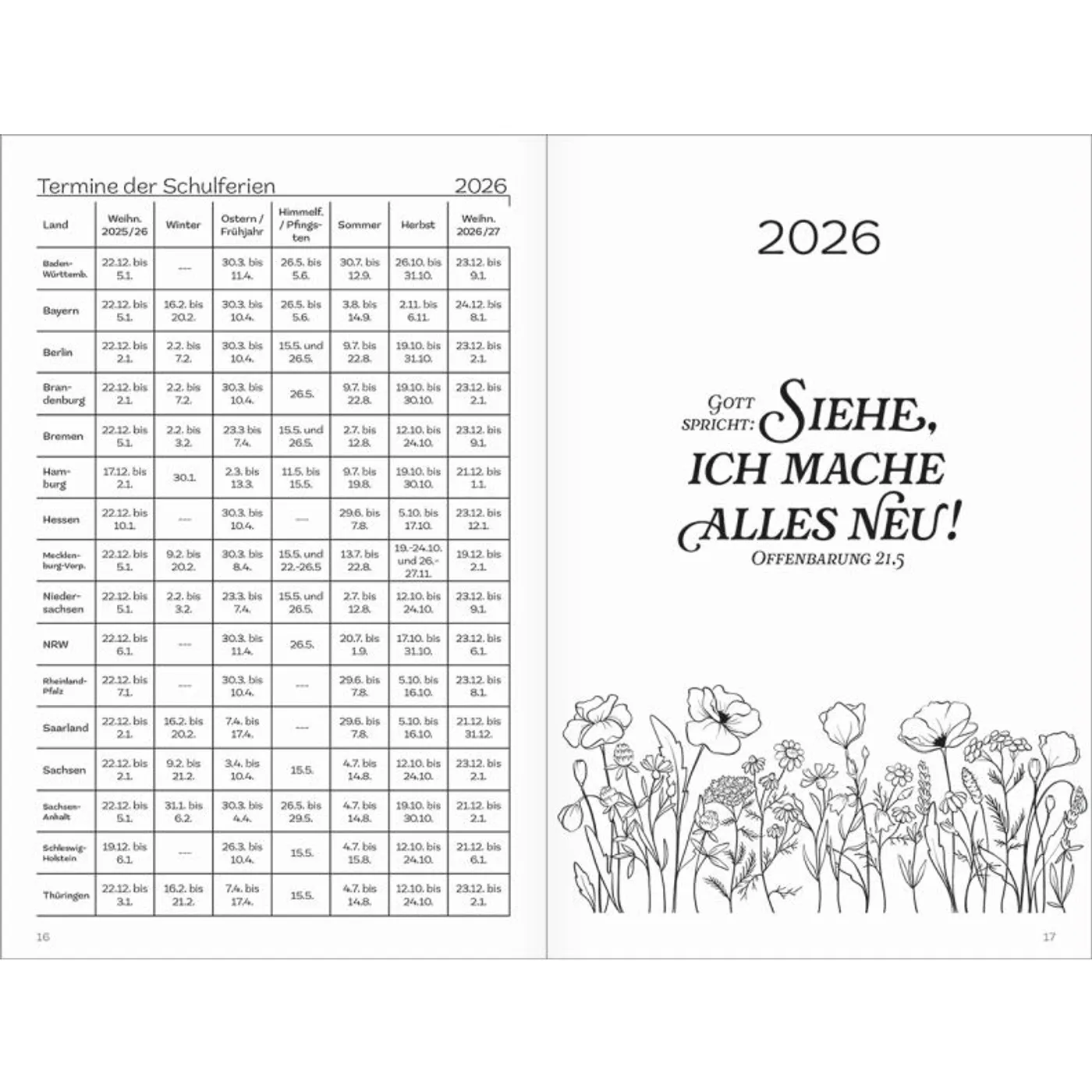 Der tägliche Begleiter im gefälligen Notice-Format. Mit ausgelosten Bibelversen für jeden Tag und Platz für Eintragungen.