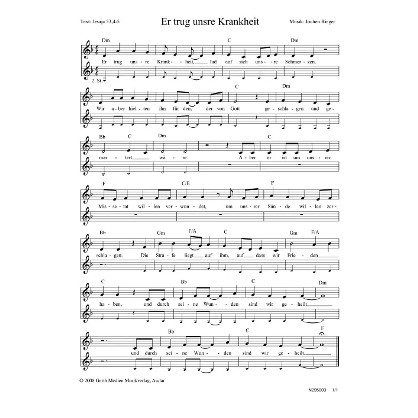 Er trug unsre Krankheit (diese Variante haben Sie gerade ausgewählt) (Kinderchor, mit Akkorden, zweistimmig, D-Moll) Jochen Rieger (Komposition) |