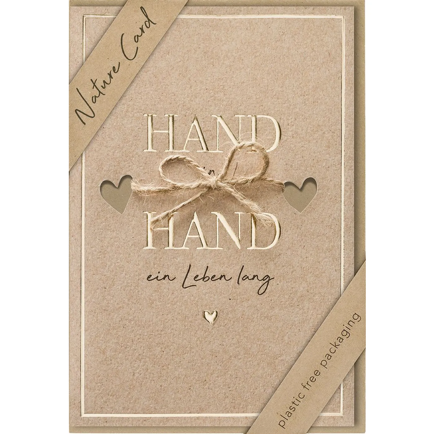 Briefumschlag und Karte werden mit einer Papierbanderole zusammengehalten.Mit braunem Naturumschlag.