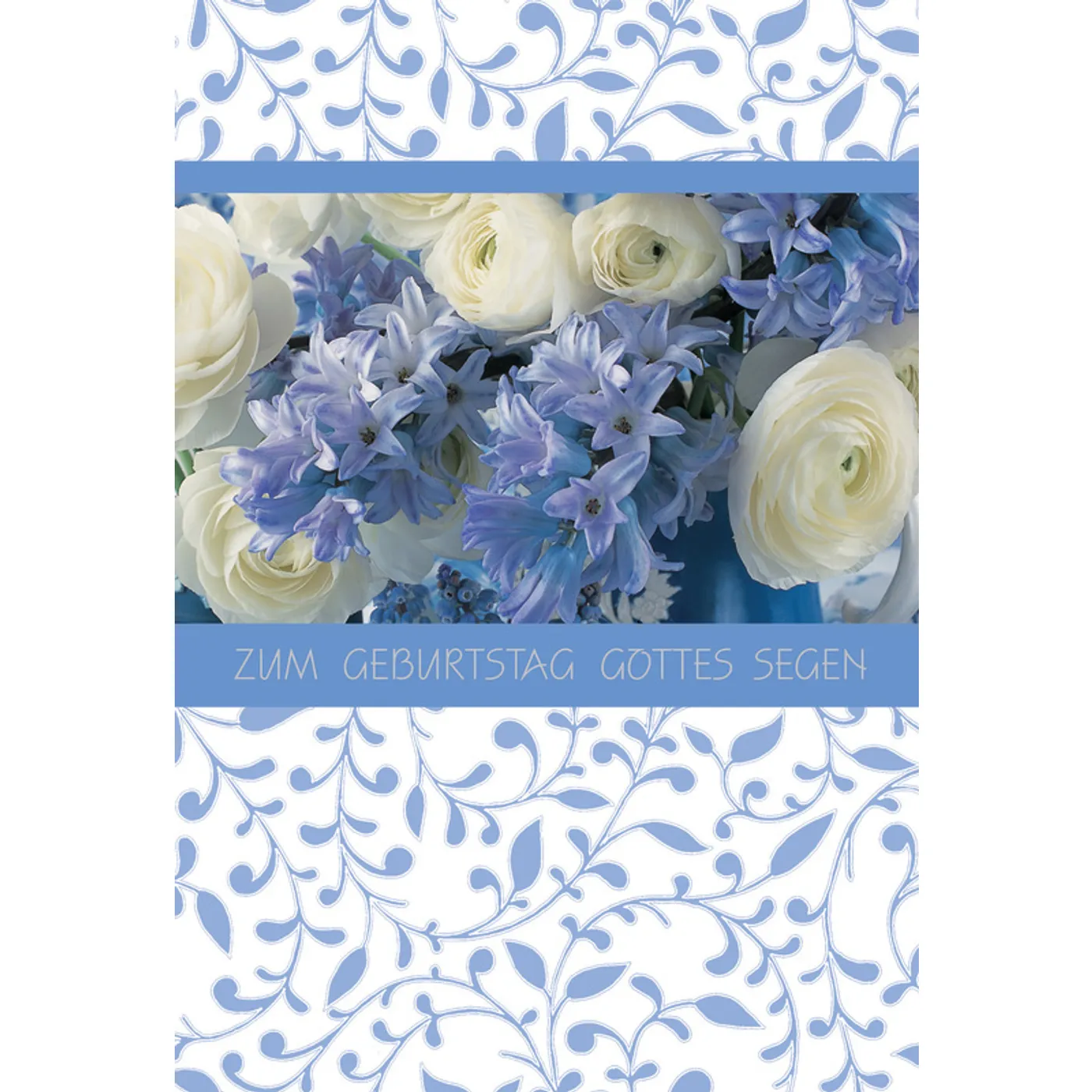 Faltkarte "Zum Geburtstag Gottes Segen" Motiv Floral blau - 5 Stück