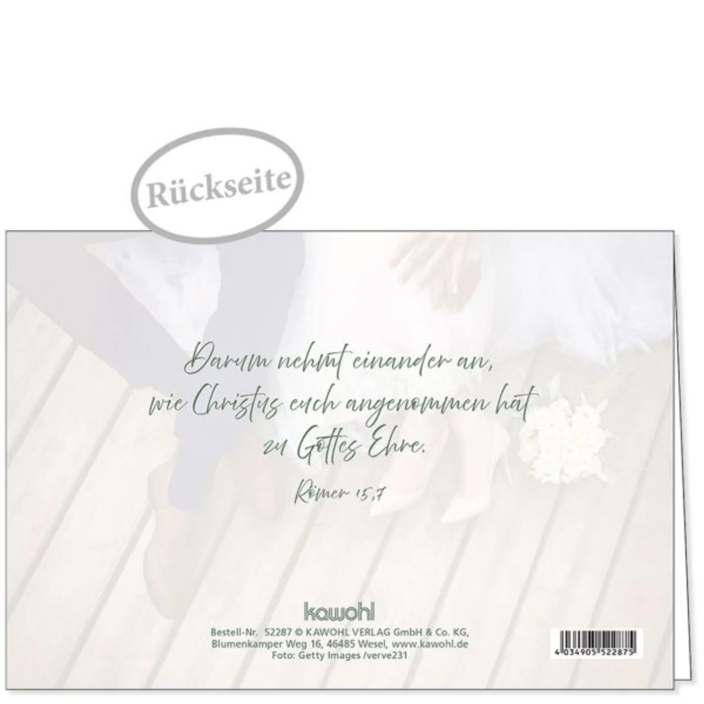 Überreichen Sie dem Hochzeitspaar Ihre persönlichen Worte zu ihrem großen Tag mit dieser Hochzeitskarte. Die gute Botschaft und die liebevolle Gestaltung unterstreichen Ihre Gratulation. Freude schenken kann so einfach sein