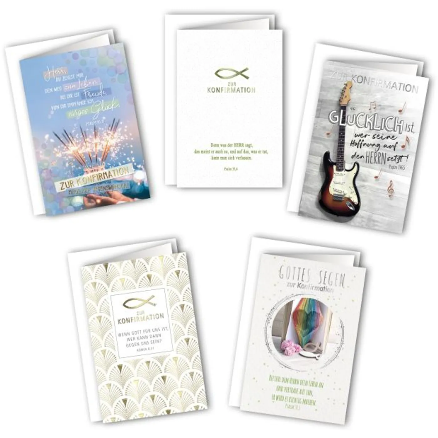 5 verschiedene Faltkarten Konfirmation mit Briefumschlag, in Klarsichthülle verpackt,