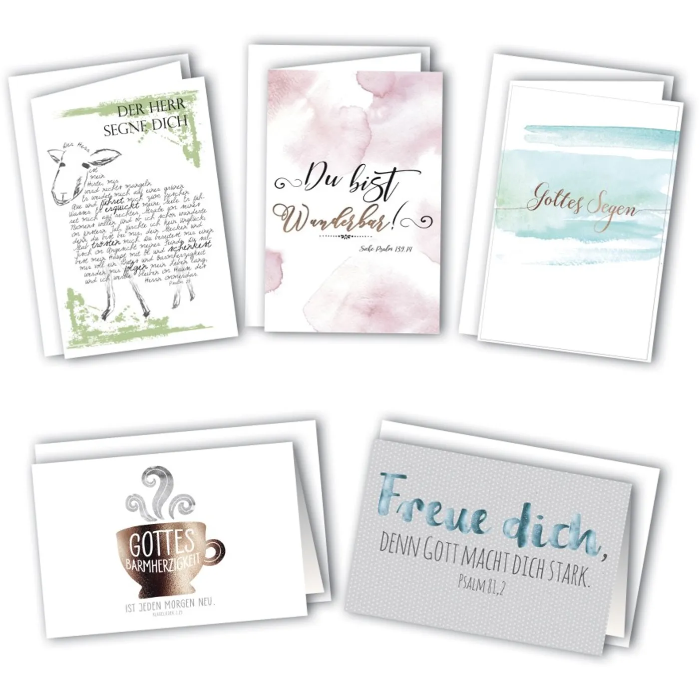 5 verschiedene Faltkarten neutral mit Bibelvers mit Briefumschlag
