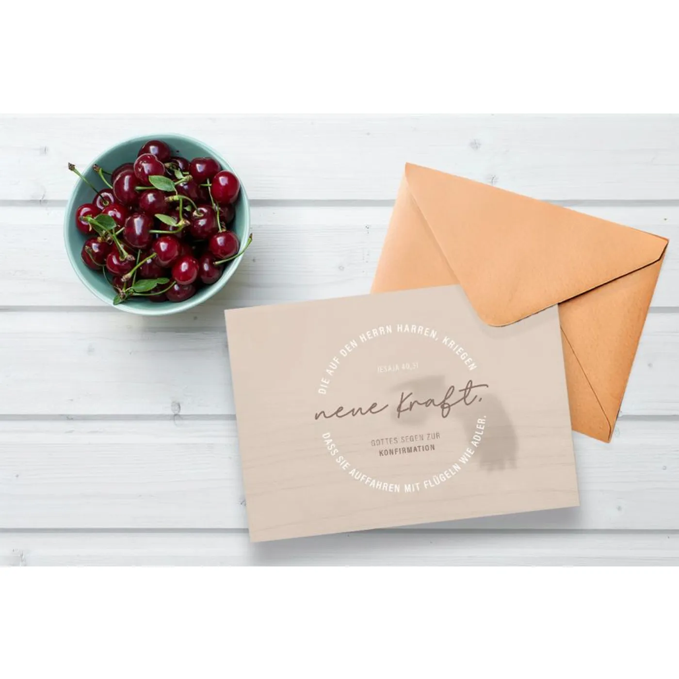 Diese Karte kombiniert modernes Design mit einer tiefgehenden christlichen Botschaft. Sie ist ideal, um Konfirmanden in ihrem Glauben zu stärken und ihnen Gottes Kraft für ihren Lebensweg zuzusprechen.