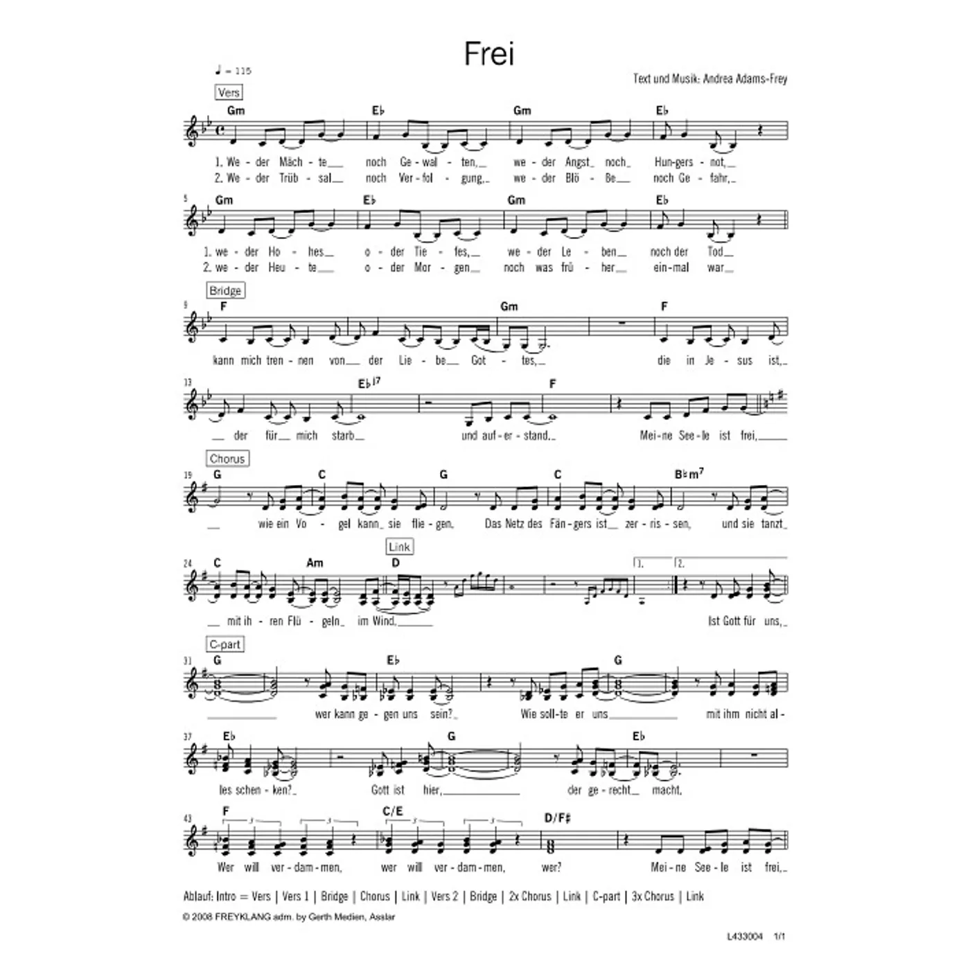Frei (diese Variante haben Sie gerade ausgewählt) (modern, dreistimmig, mit Akkorden, G-Moll) Andrea Adams-Frey (Text, Komposition) |