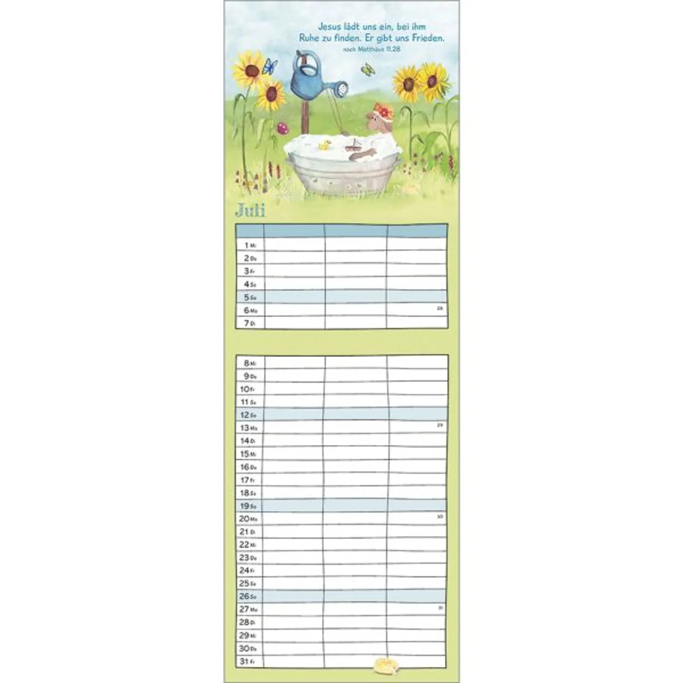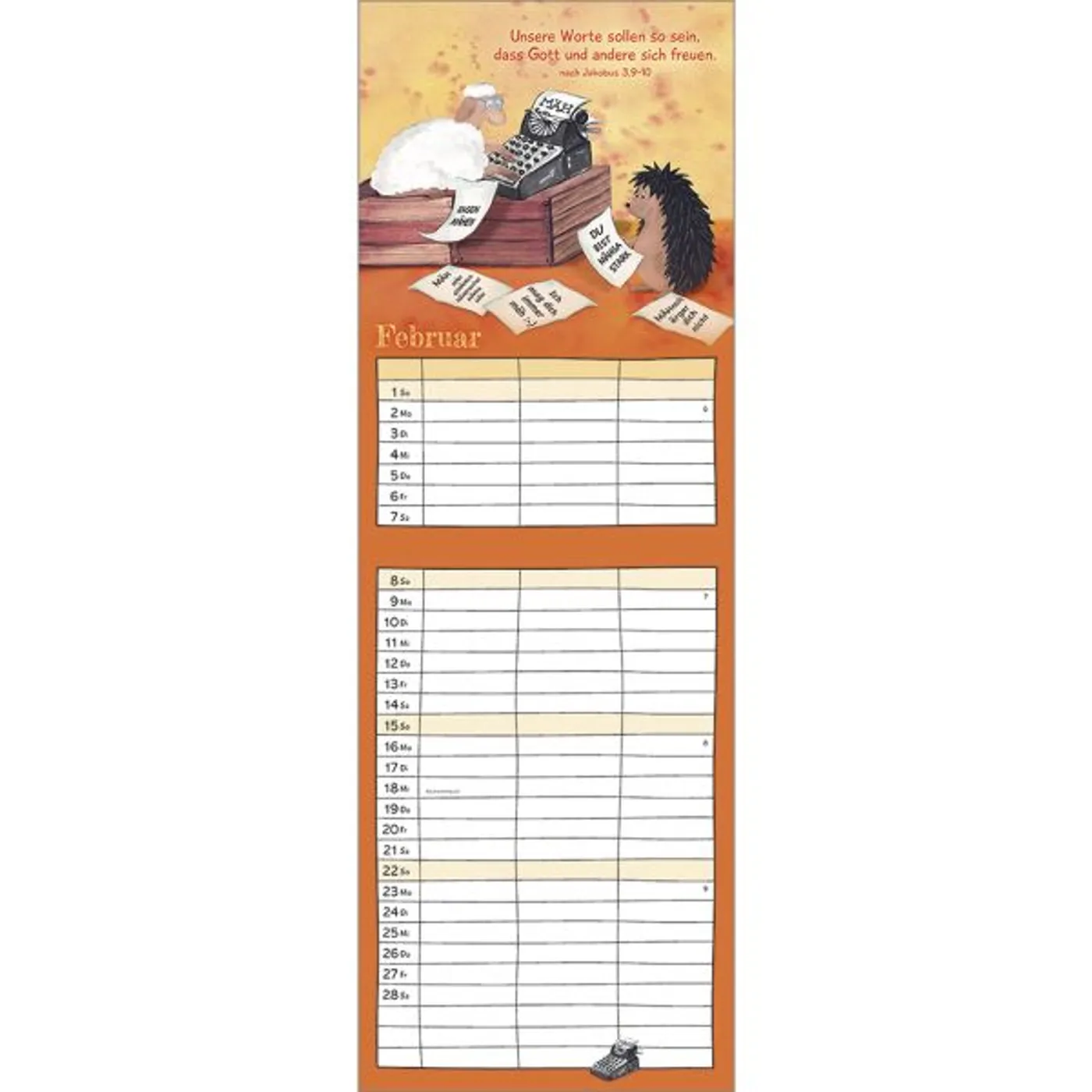 Liebevoll gestaltete Tier-Illustrationen von Conny Trometer und ermutigende Bibelverse verbreiten Freude, Mut und Leichtigkeit im Alltag vielbeschäftigter Familien.
