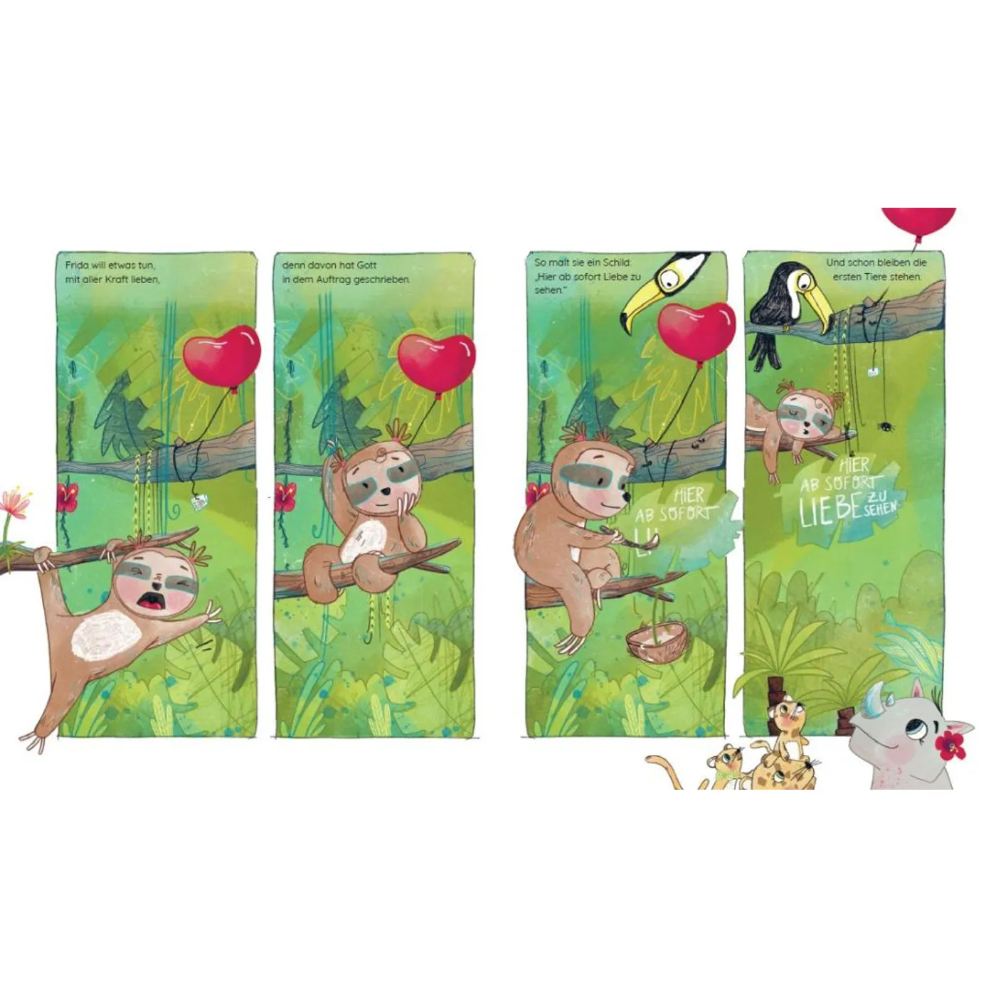 Faultier Frida will Liebe zeigen. Das ist es doch, was Gott in seiner Botschaft geschrieben hat. Aber was ist Liebe überhaupt?